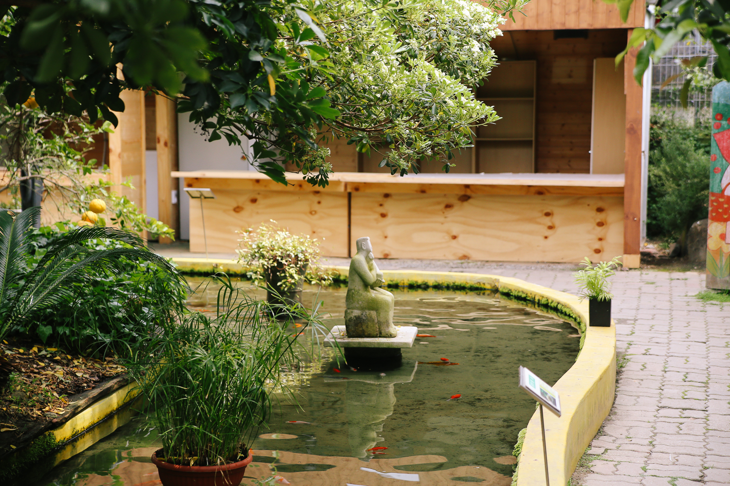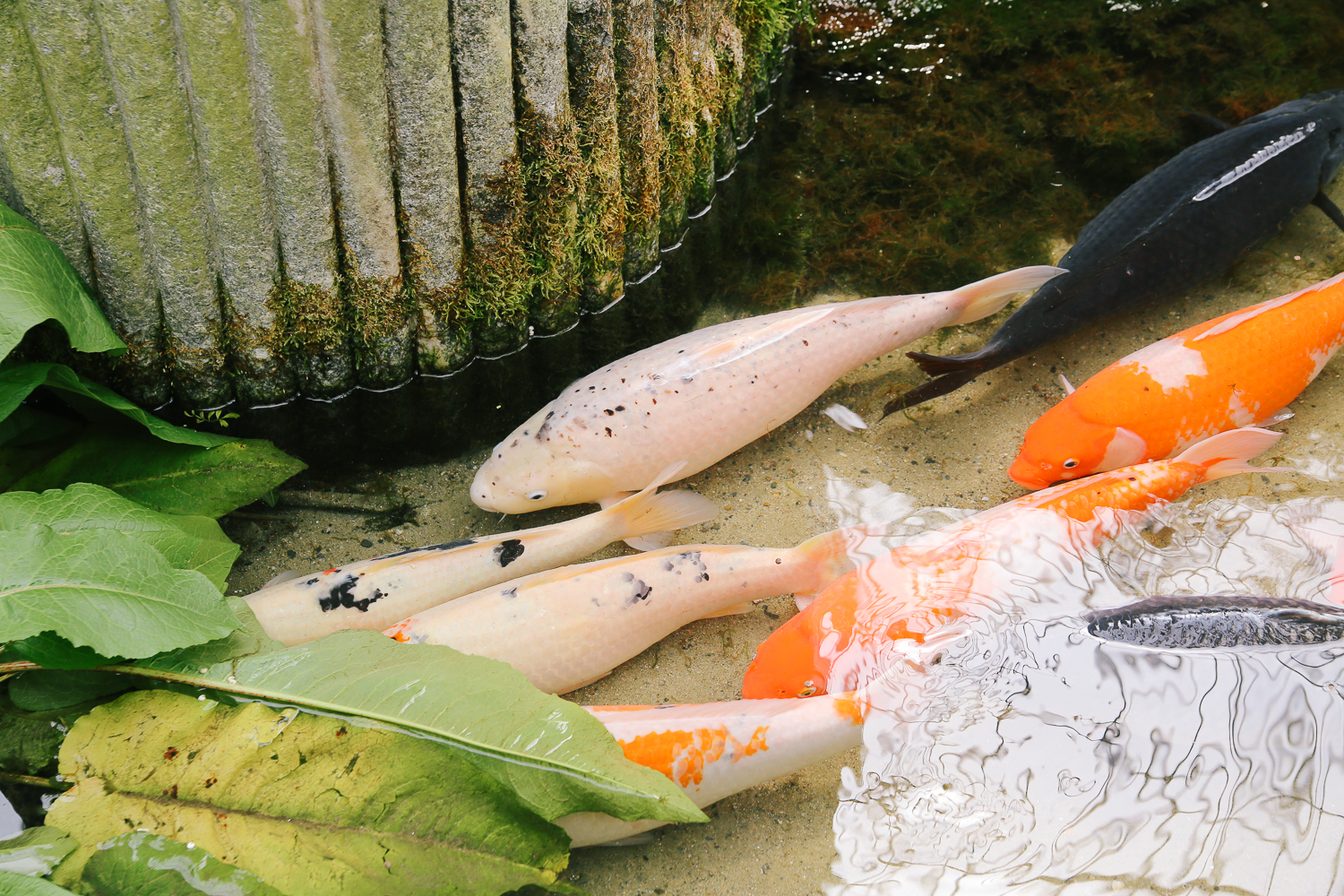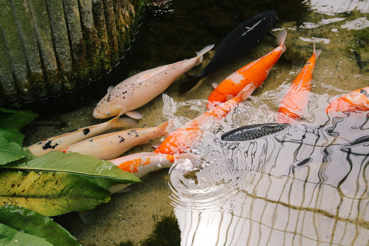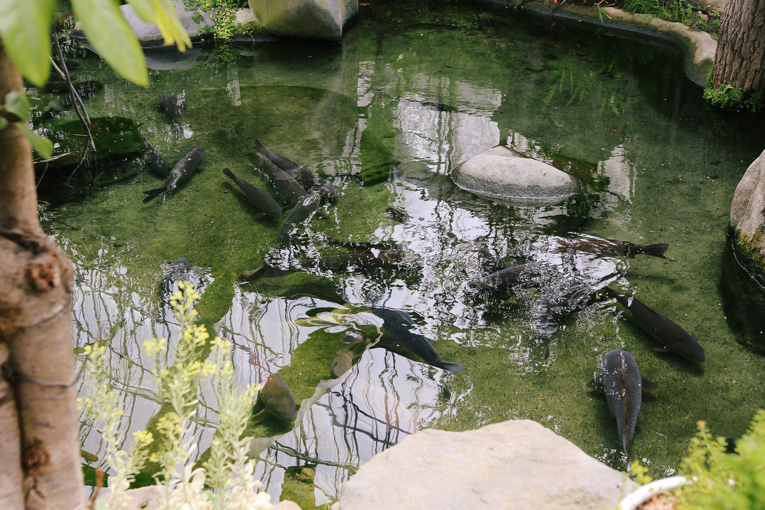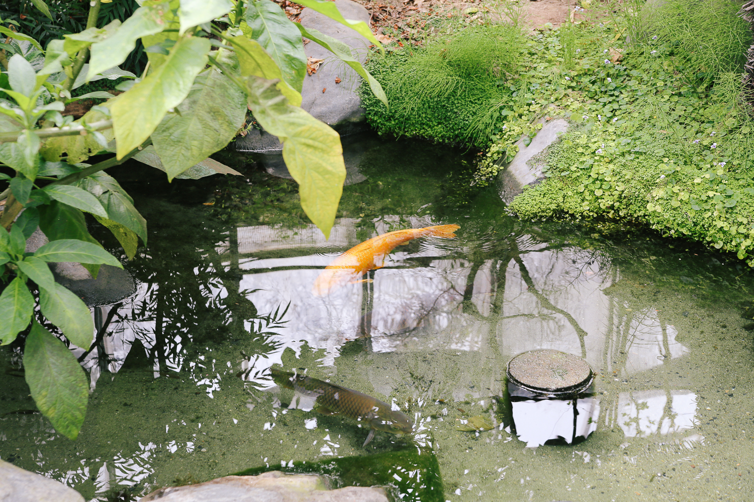 작은 연못에는 다채로운 잉어들이 유유히 헤엄을 치고 있다.