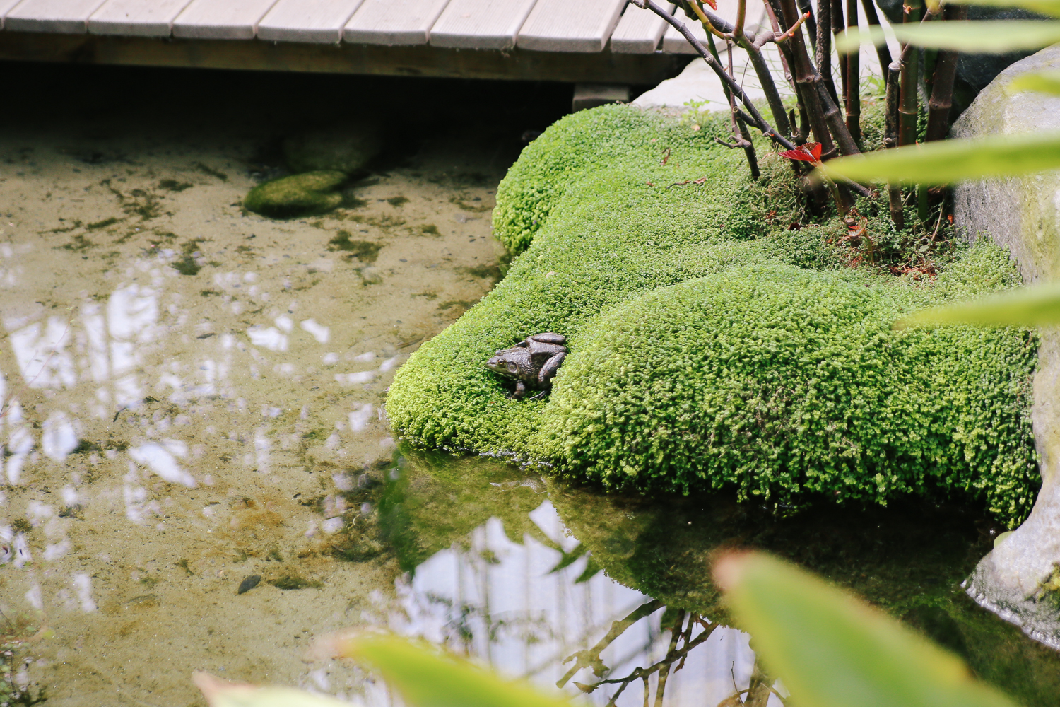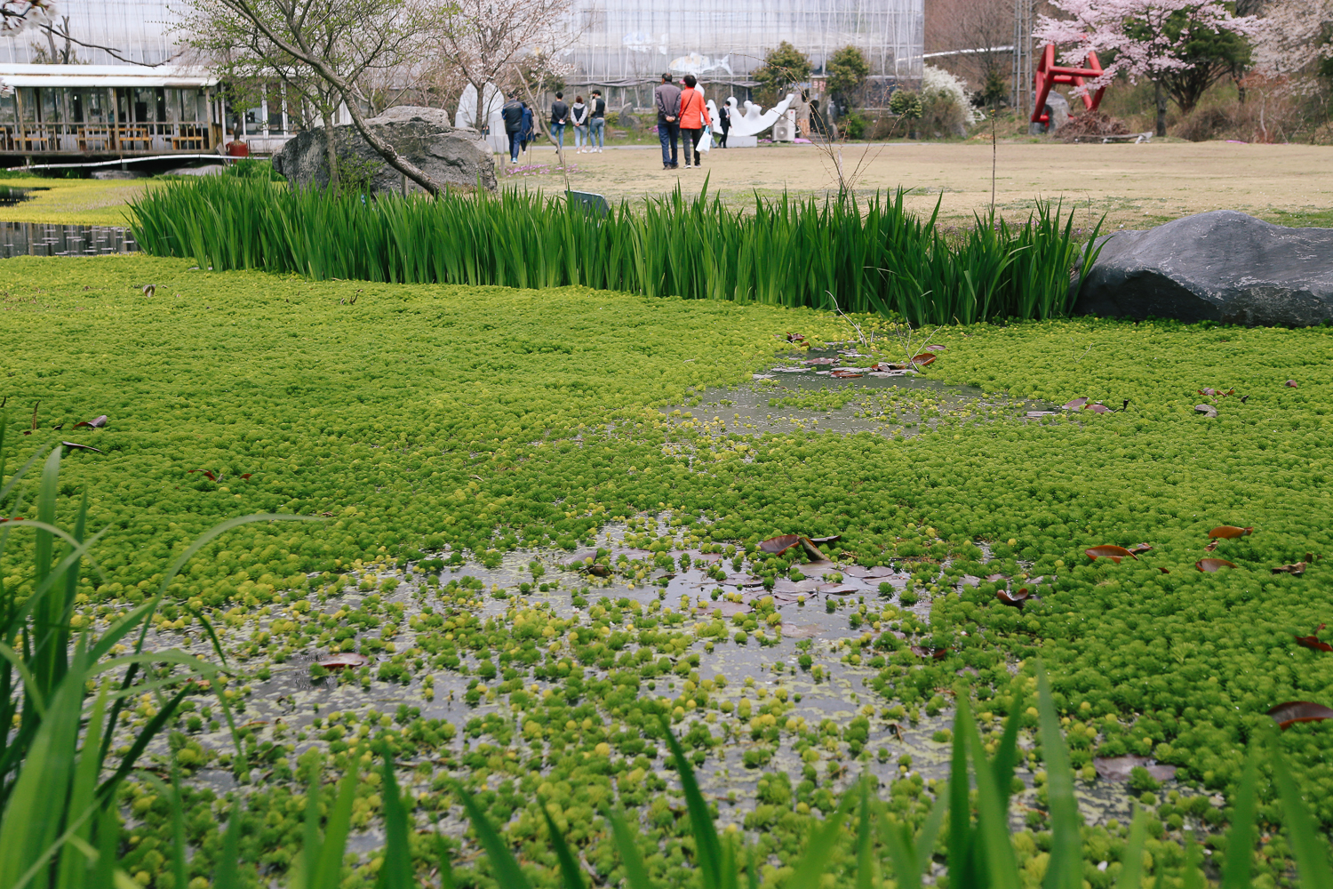 연못 핀 이름 모를 식물. 식물 중앙에 이슬이 맺힌 모습이 꽤나 매력적이다. 멀리서 보면 마치 잔디밭이 펼쳐진 것처럼 묘한 뷰를 자랑했다.