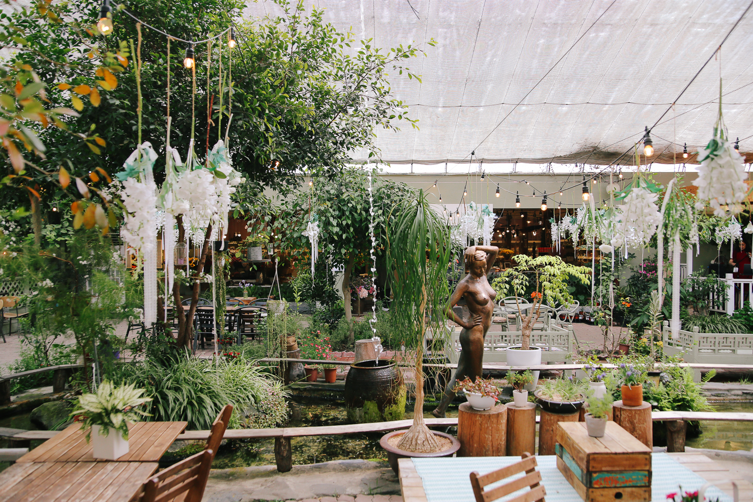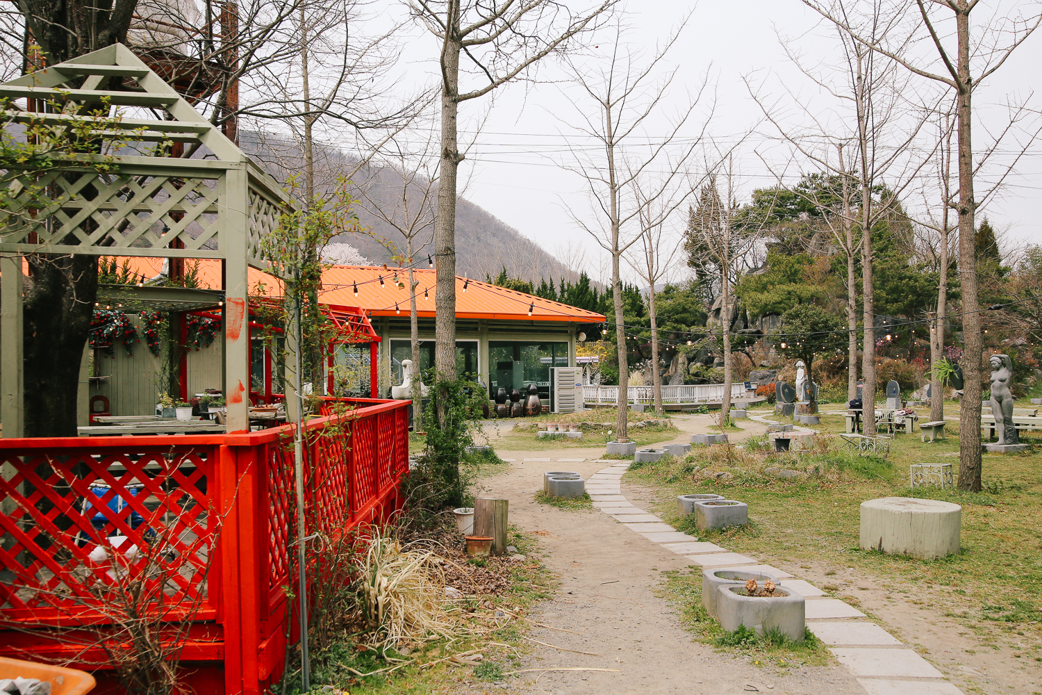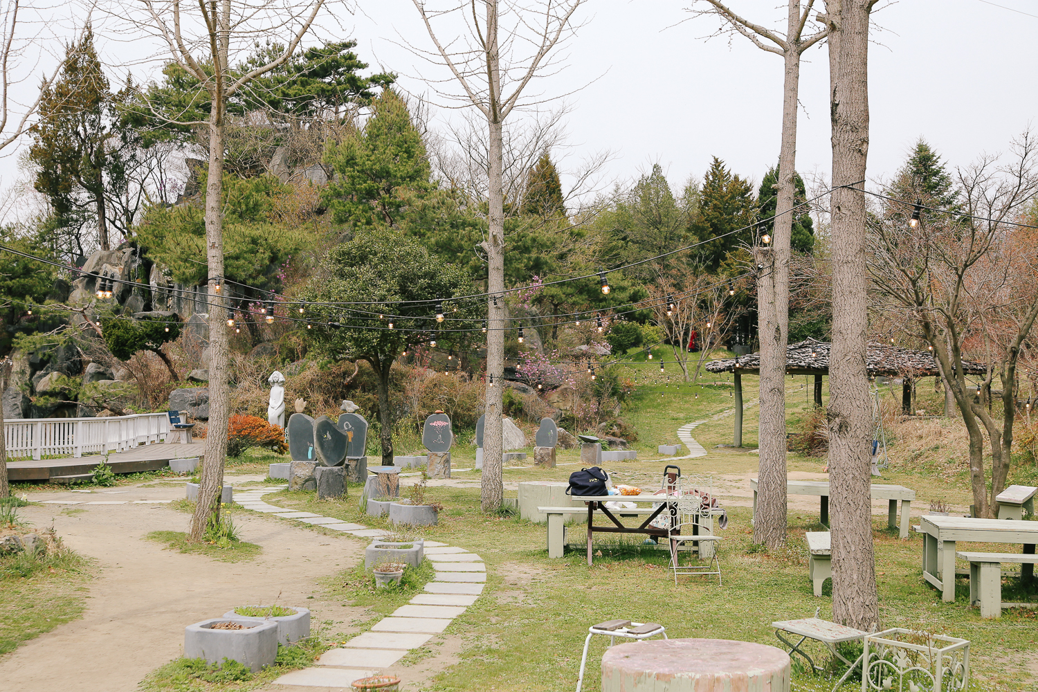 기념품 가게를 둘러보고 밖을 나서면 나무 사이사이로 전구 조명을 달아놔서 아늑한 느낌을 준다.
