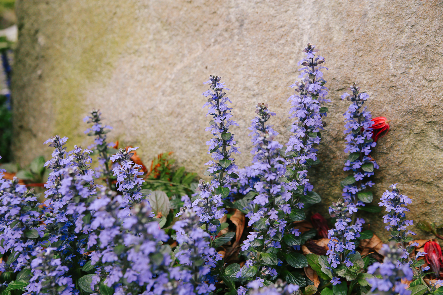 초록색 잎과 포근하게 어우러지는 시가 새겨 저 있는 비석.