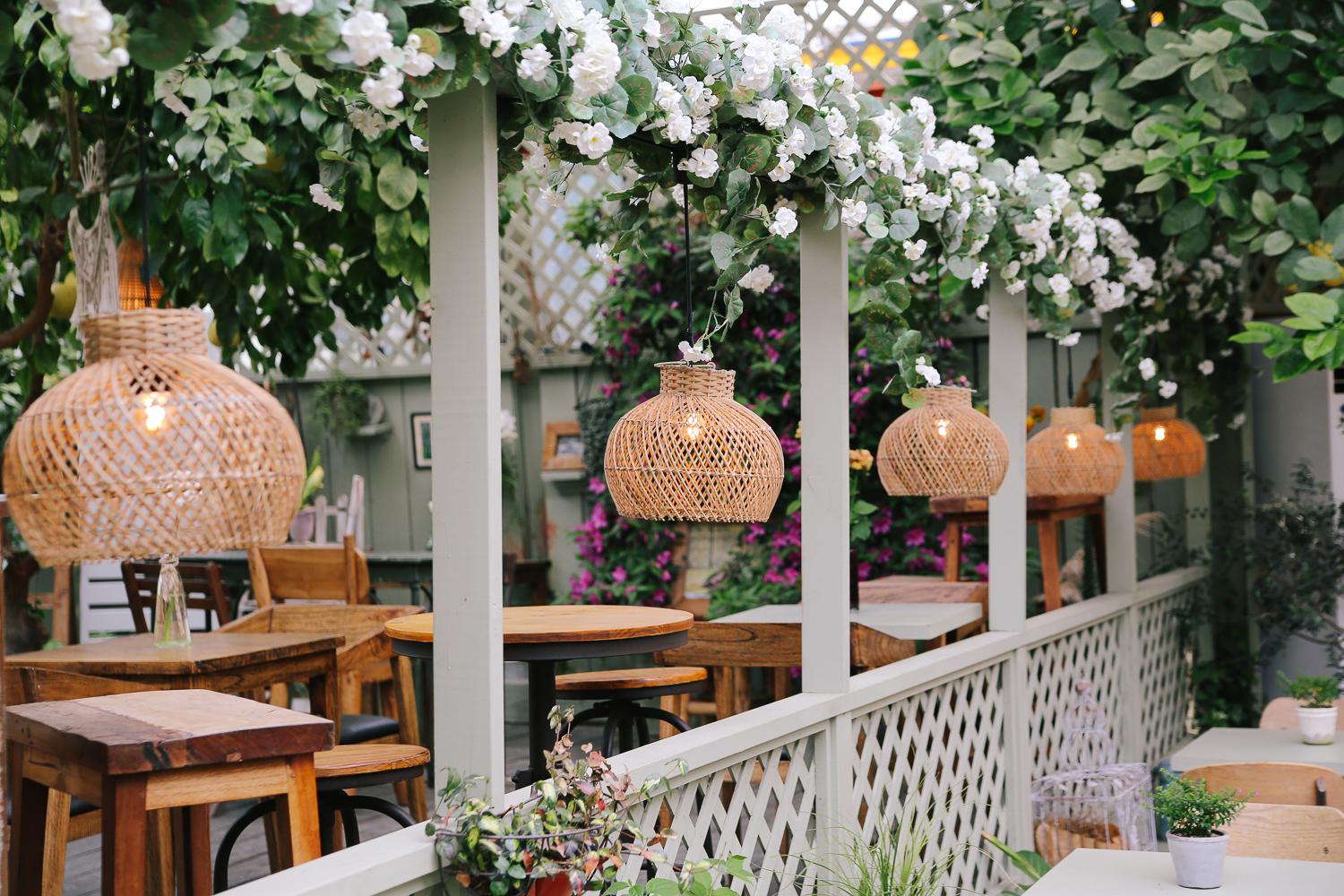 조명 전구와 함께 걸려있는 꽃들은 마치 결혼식 때 볼 수 있는 부케 같았다. 덕분에 웨딩홀 같은 느낌적인 느낌도 느껴졌다. ㅎㅎ