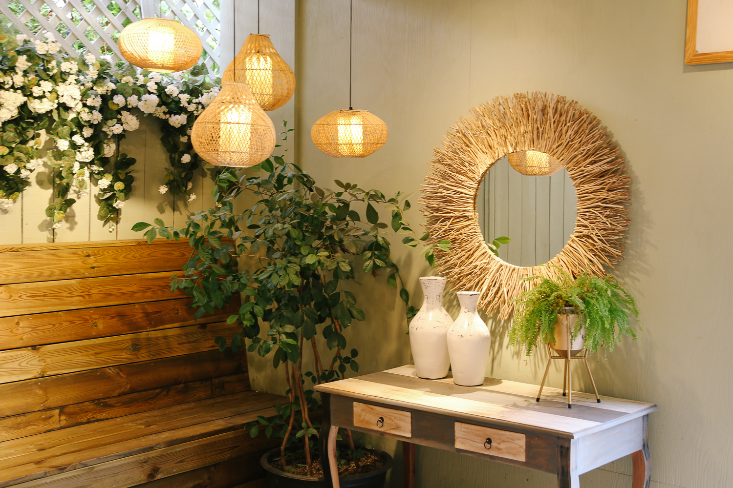 역시 감성 인테리어 잘 어울리는 라탄 소품들. 원목 가구도 적절히 배치하여 감성 가득했다.