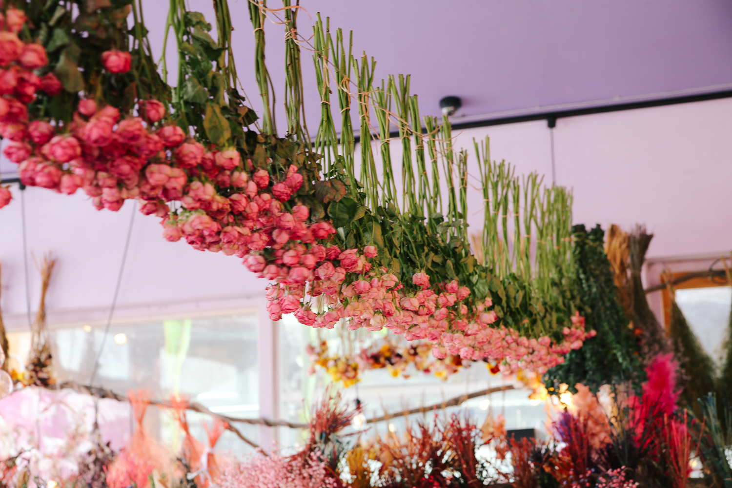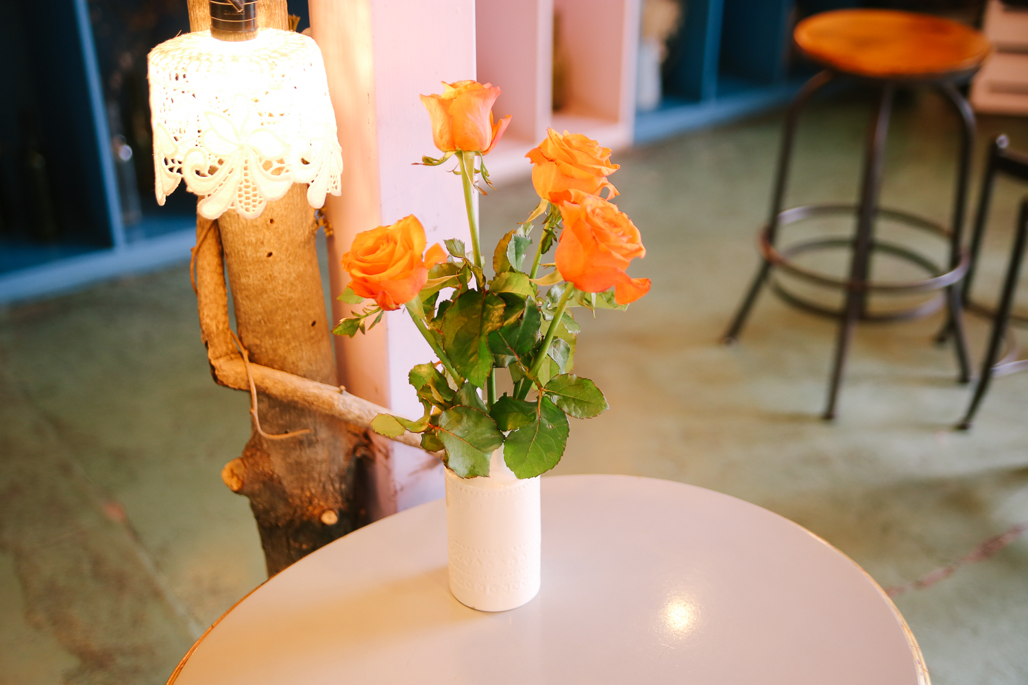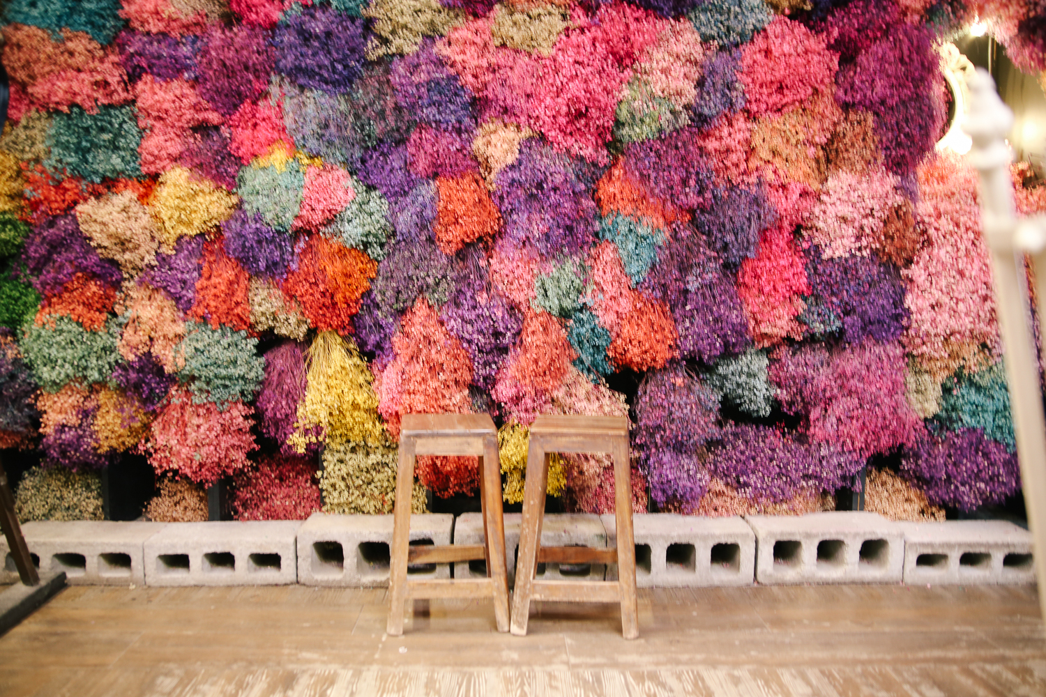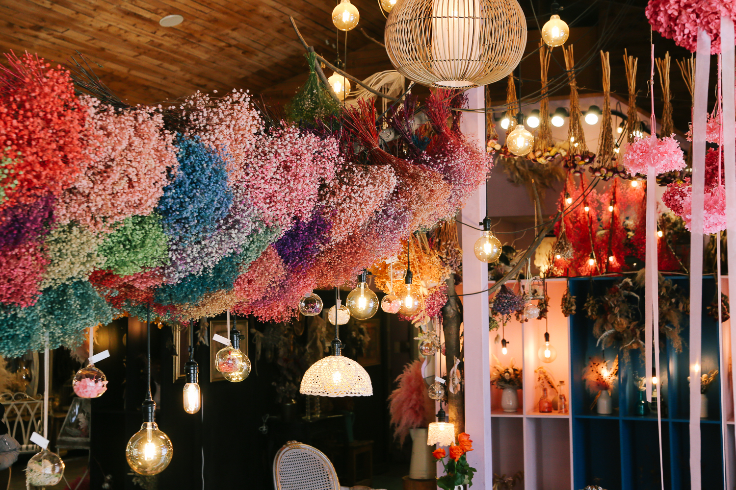 따란! 이곳은 다른 공간에 잘 꾸며진 테이블이었다. 파스텔 톤의 분홍색 벽에 새하얀 꽃들이 있었다. 다양한 꽃과 인테리어 소품, 마크라메 월행잉도 있었다. 크.. 그냥 눈으로 보기만 해도 예쁜 모습 :)