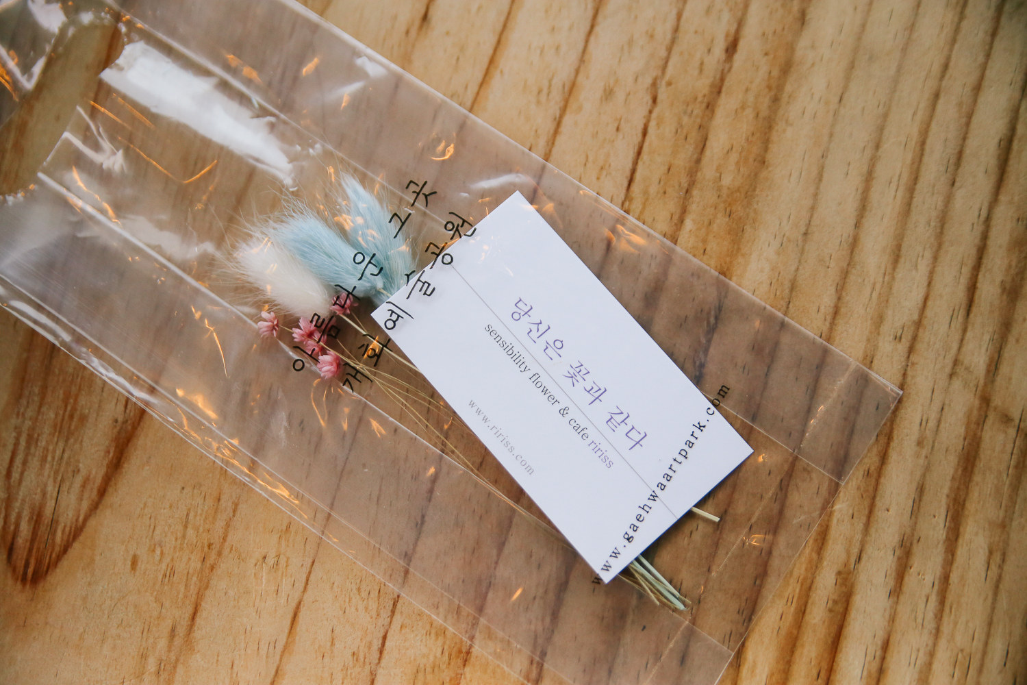 이건 커피와 함께 주었던 리리스 카페 명함과 꽃이었다. 참 별거 아니지만 감성적인 접근이다 :)