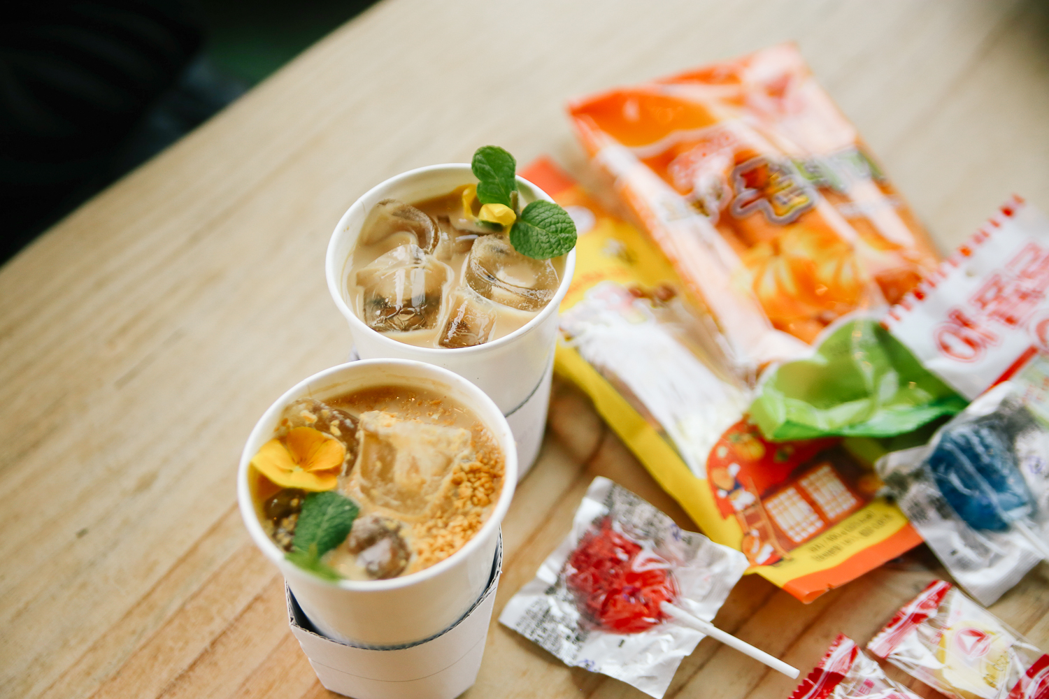 어느덧 커피가 나오고 허브랜드를 지나면서 구매했던 불량식품도 함께 먹었다. 허브랜드 중간지점에서 추억이 새록새록 떠오르는 어렸을 적 과자와 불량식품. 도저히 그냥 지나칠 수 없어 아내와 구매하고 함께 먹었다. 역시.. 맛있었다 ㅎㅎ