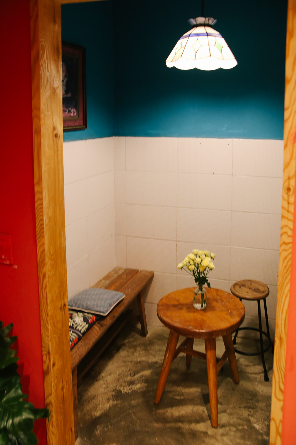 안쪽으로 들어갈 수록 다양한 콘셉트의 테이블이 존재했다. 다양한 인원이 앉을 수 있도록 한 테이블. 하다못해 혼자서 앉을 수 있는 공간도 있었다.