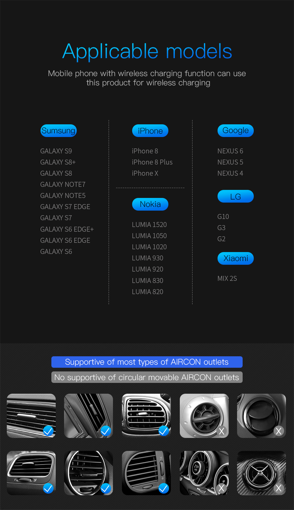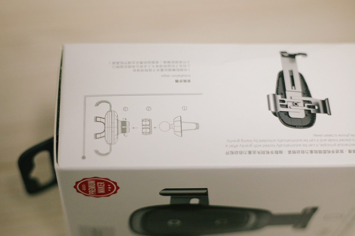 제품의 설명서가 동봉되어 있다. 하지만 읽지 않고도 쉽게 세팅이 가능한 송풍구 무선 휴대폰 거치대이다. 이 제품을 쓰기 전까지는 자석으로 사용했었는데 걸쇠 식으로 좌우, 하단으로 잡아주어 안정감이 있다. 그리고 별도의 휴대폰 충전선을 연결하지 않아도 거치대에 꽂아놓고 사용하면 자동 충전이 되니 정말 편리하다 :) 오래 기다린만큼 효율성이 있는 무선 휴대폰 거치대이다 :)