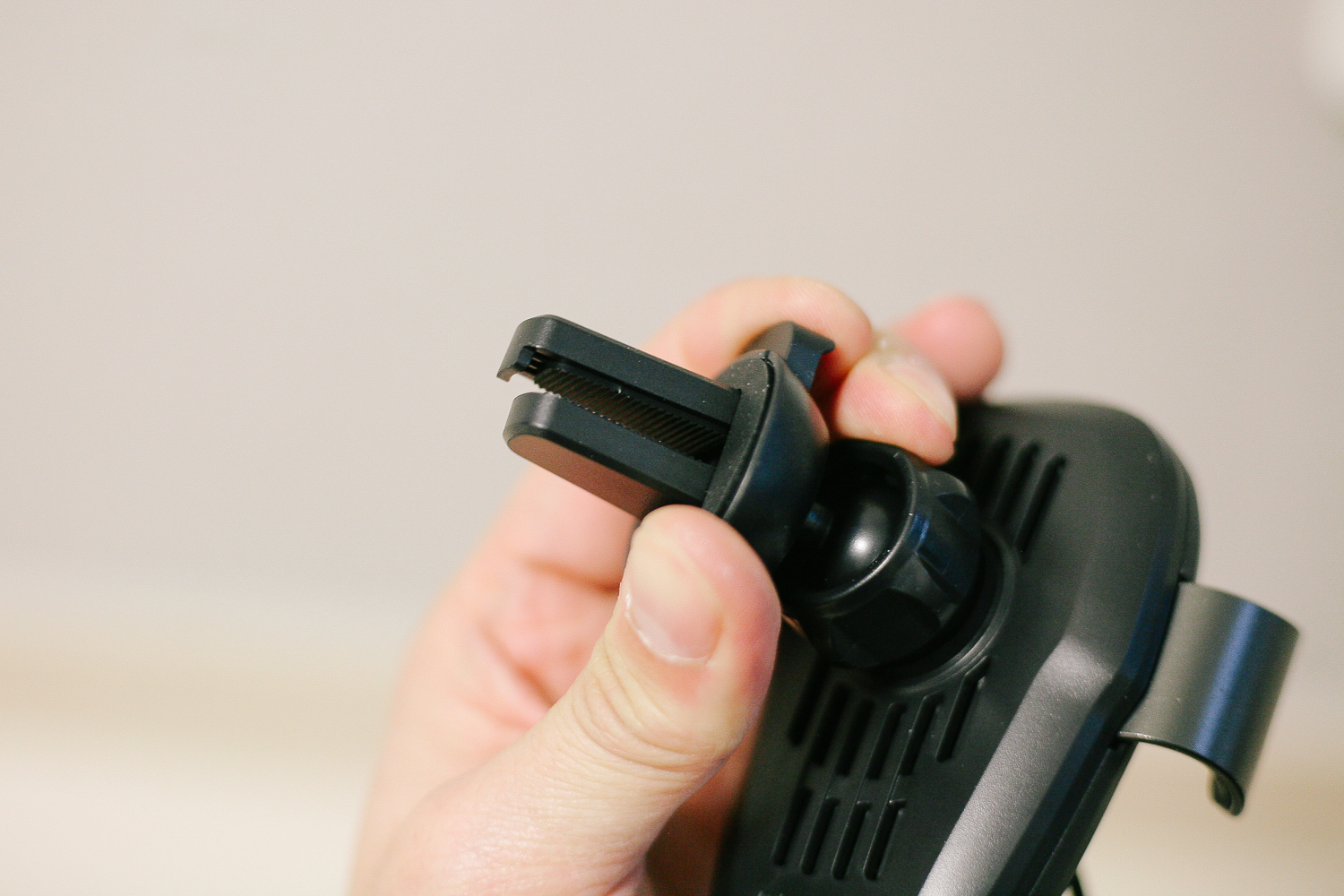 이 부분이 에어컨 및 히터 송풍구에 집어서 고정하도록 되어 있다. 잡히는 것 외 걸리도록 약간의 홈이 있어 안전감이 있다.