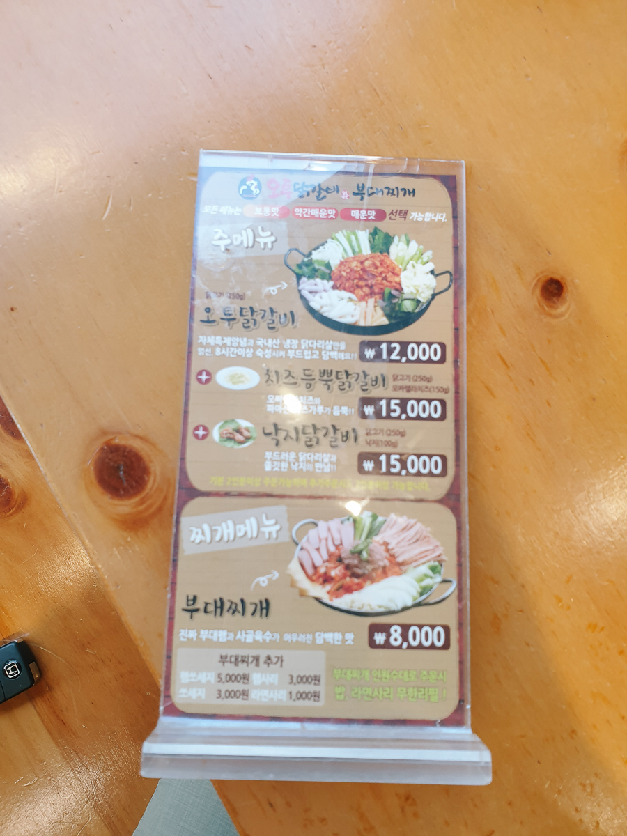 점심시간이 지난 평일 오후라 굉장히 한산했다. 깔끔한 외형과 내부 인테리어. 우리는 오투 닭갈비(12,000원)+치즈 듬뿍 닭갈비(15,000원)를 시켜 먹었다. 예전에 아내가 부천에서 자취했을 때 자주 먹었던 최애 음식 중 하나 닭갈비. 그때 맛있게 먹던 기억 때문에 간간히 닭갈비 집을 찾는 것 같다.