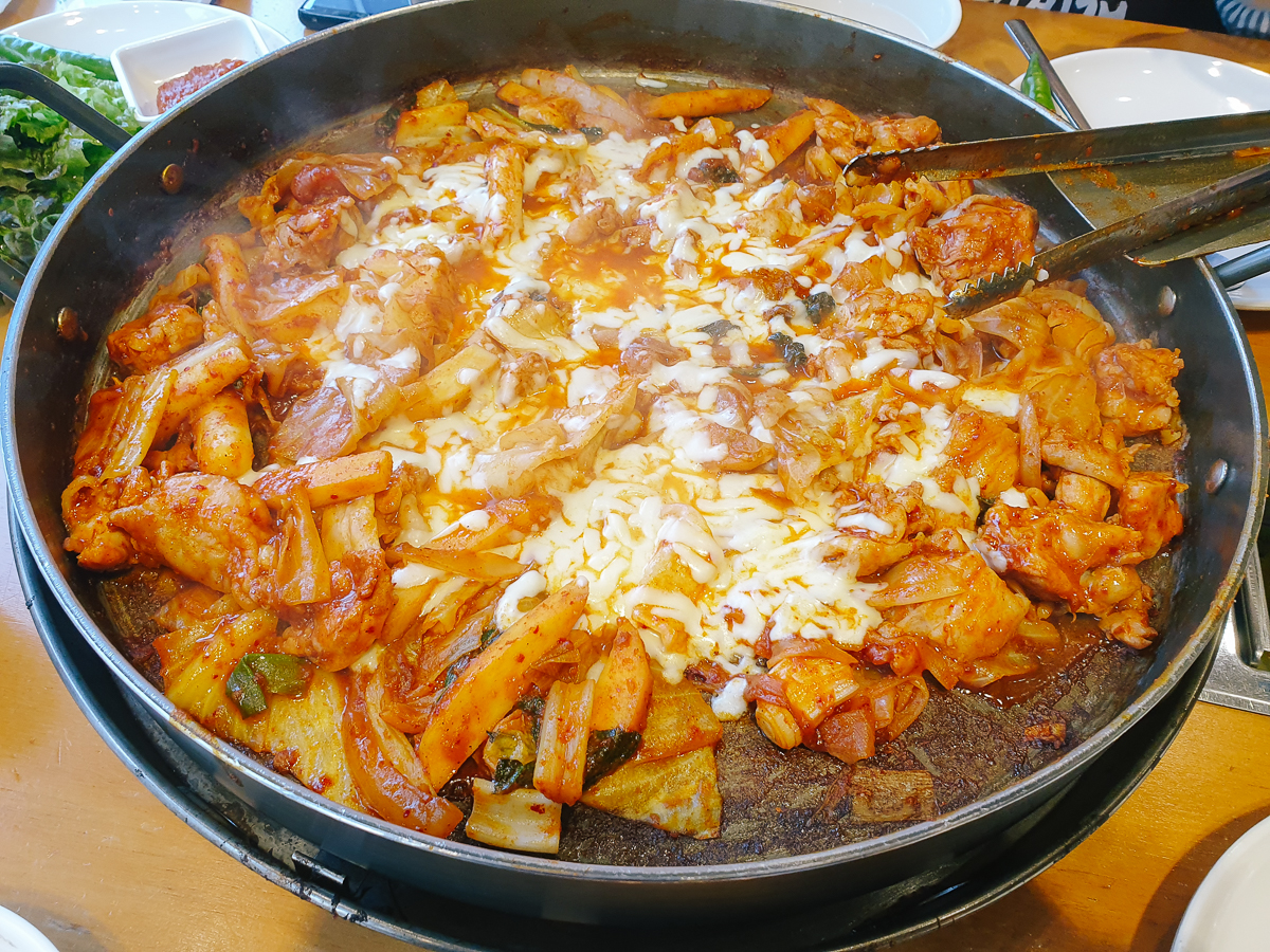크아.. 그냥 봐도 너무 맛있어 보이는 비주얼. 저번에 다산동에서 먹었던 박**춘천닭갈비집 보다 훨씬 맛있었다. 여기는 양도 푸짐하고 양념과 치즈가 음식에 잘 어우러저있다고 나 할까. 아무튼 적당히 매콤하면서 너무 맛있었다.