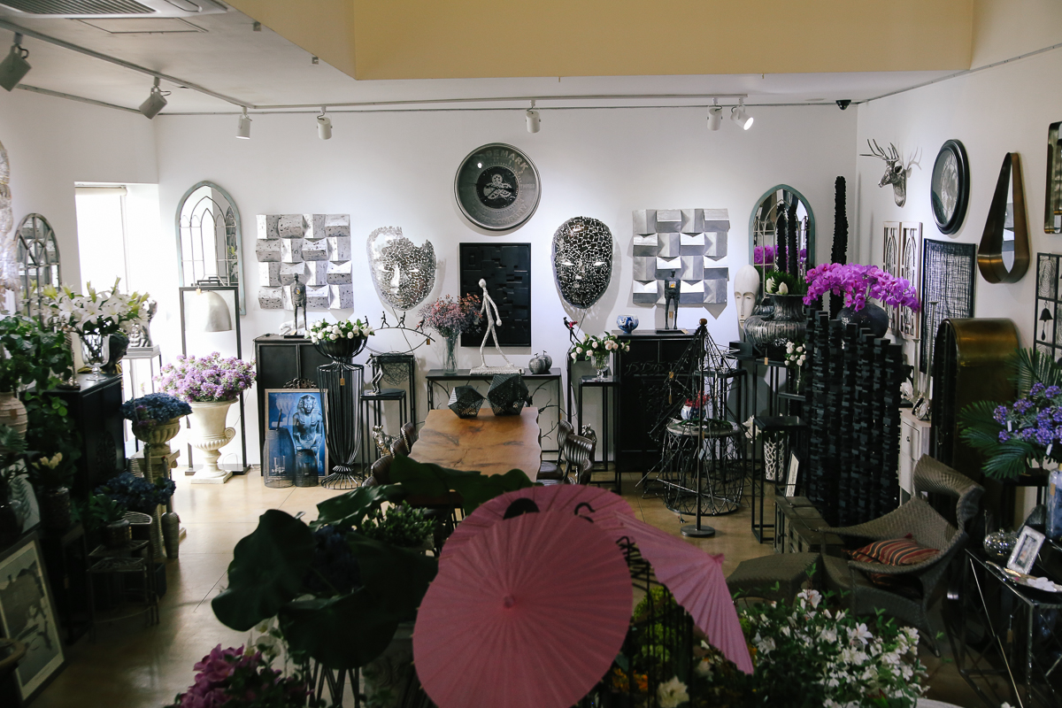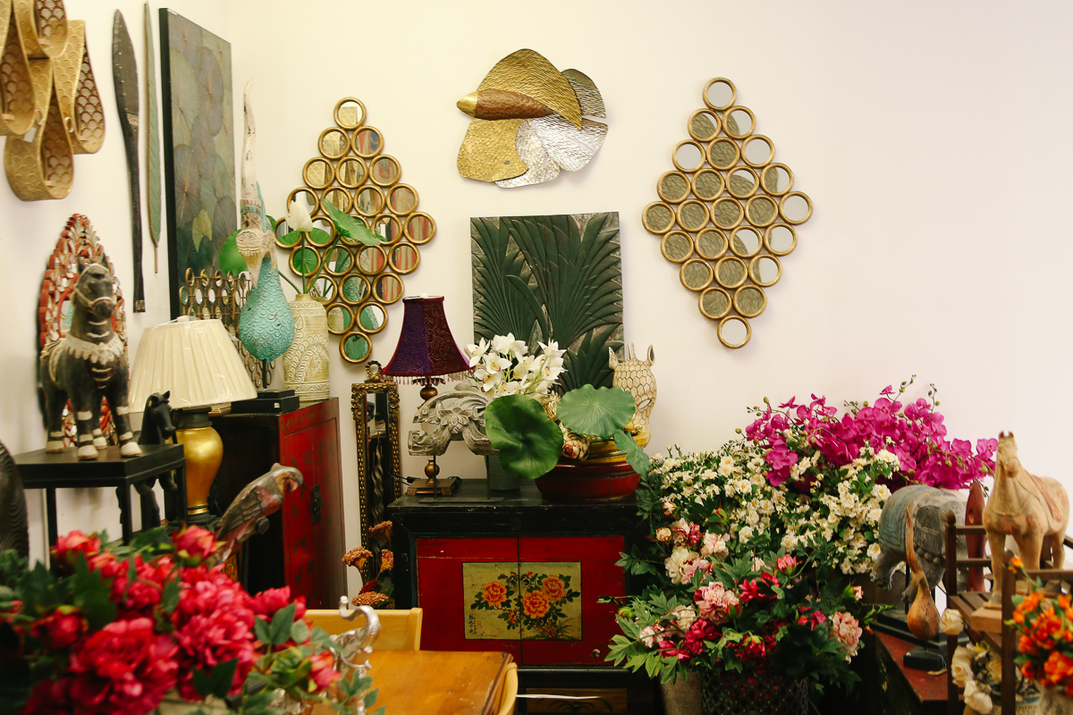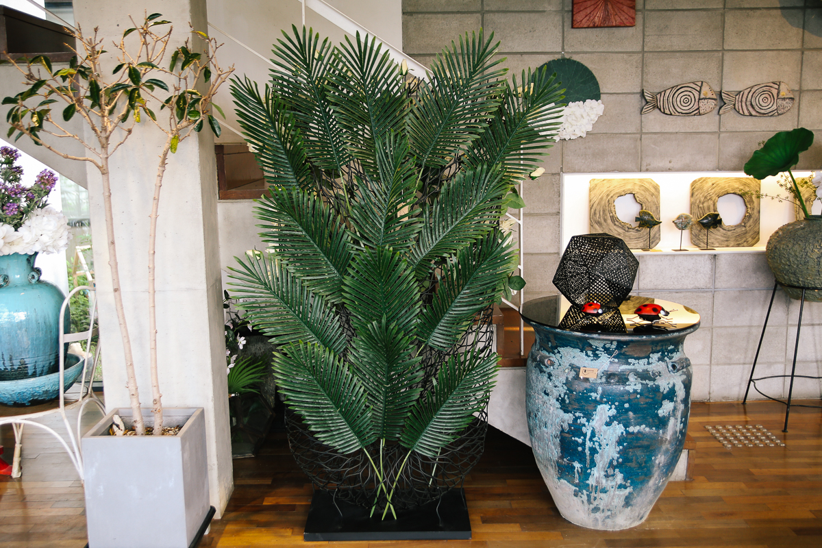 우리가 자리했던 쪽 소품들. 다양한 꽃과 조각상들이 가득하다.