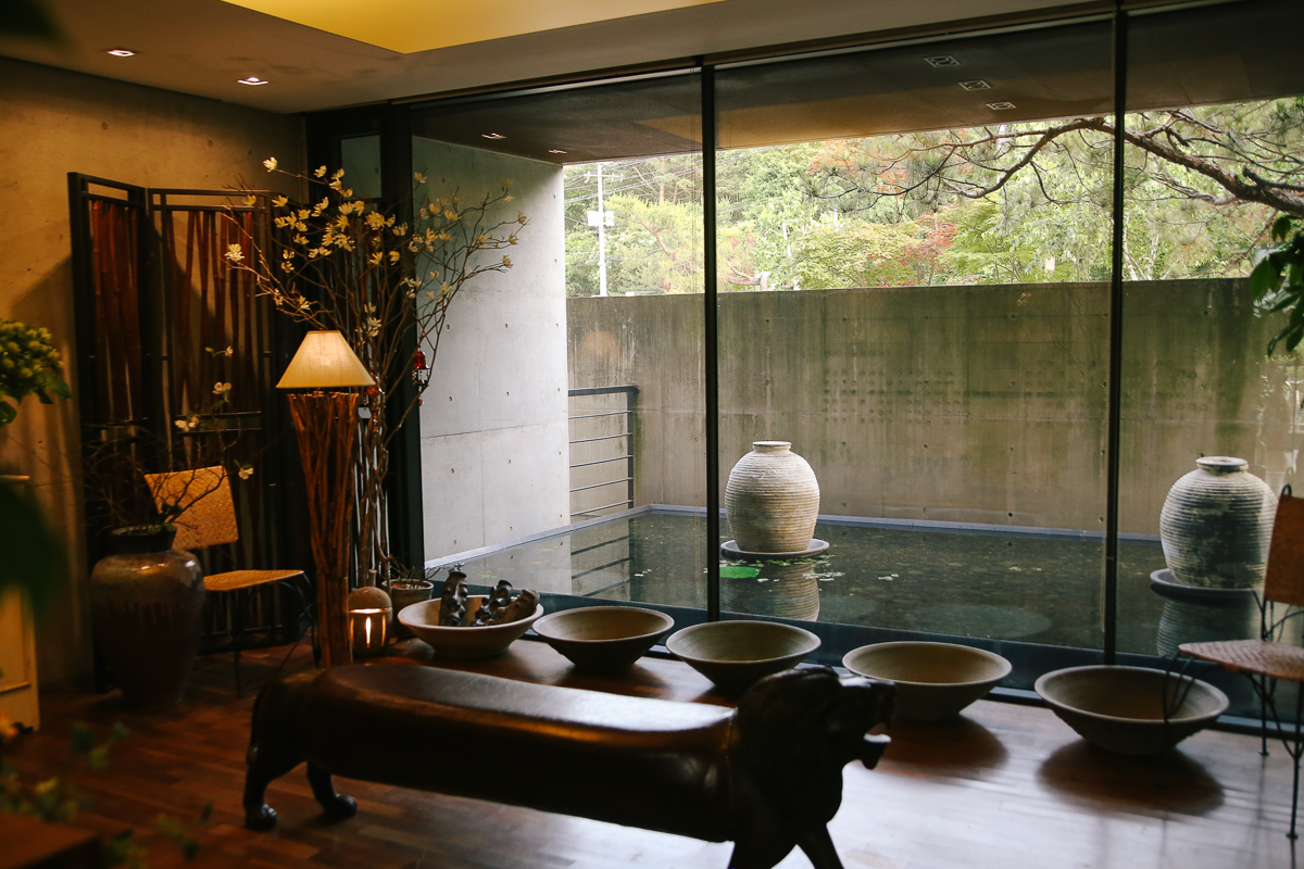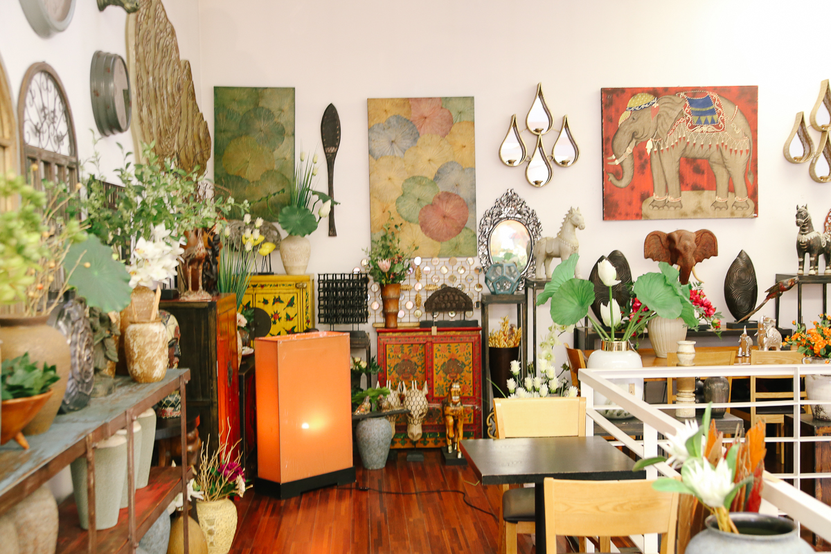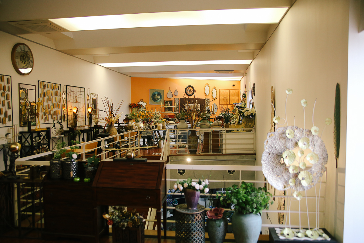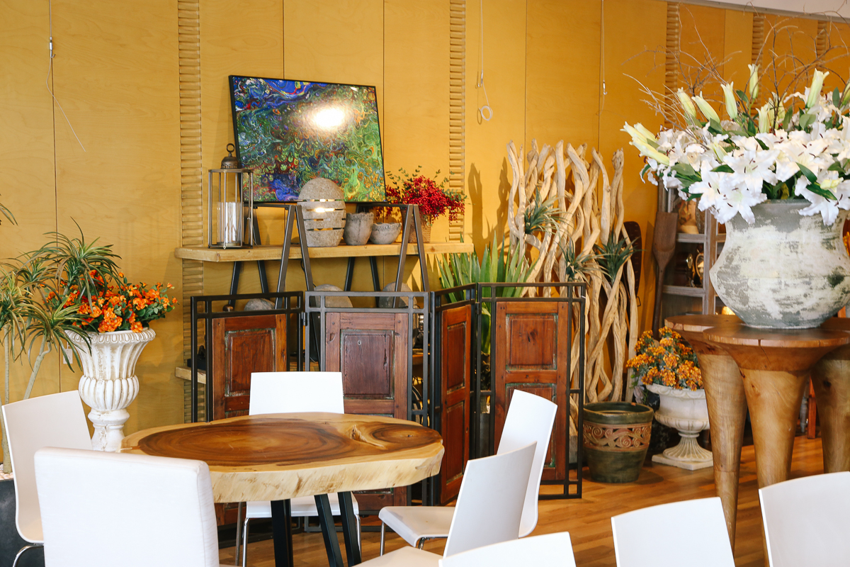 우리가 자리했던 쪽 소품들. 다양한 꽃과 조각상들이 가득하다.