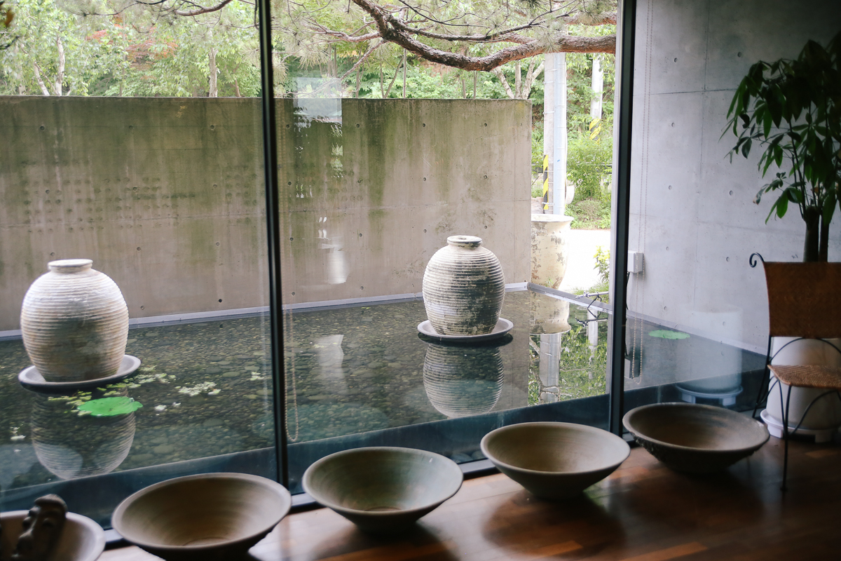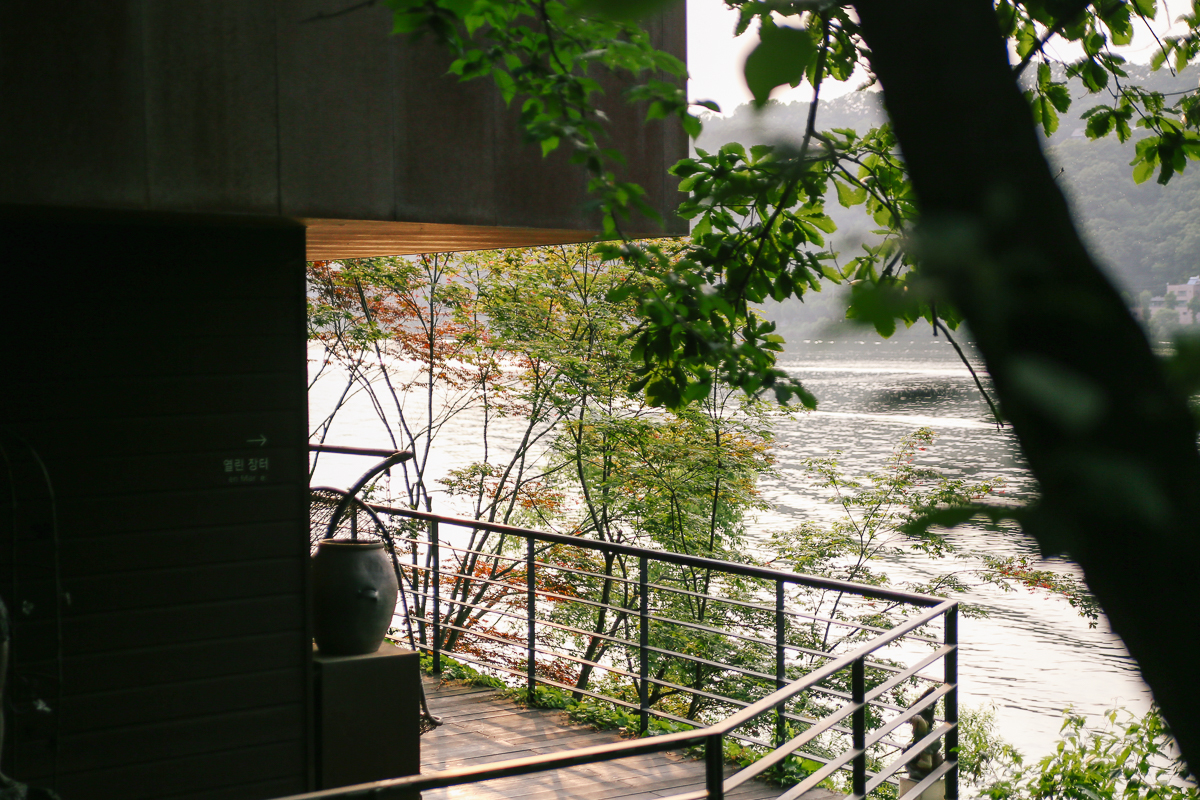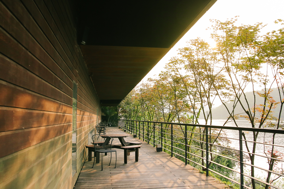그리고 산책로를 따라 안으로 들어가면 숨어있는 정원과 발코니 테이블이 있다. 첫 방문 때는 이곳에 사람이 자리하고 있어 사진을 못 찍었지만 이번엔 담을 수 있었다. 이곳도 남한강 전경이 보이도록 큰 창 같이 오픈된 가벽을 쳐놔서 덩굴과 묘하게 어우러지는 모습이었다.