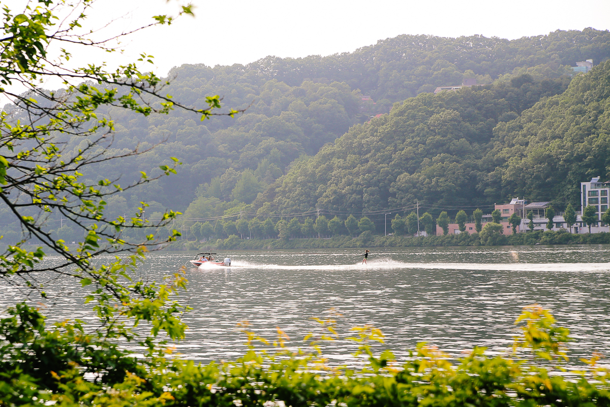 산책로를 따라 걷다보면 저 멀리 남한강에서 레저 스포츠를 즐기는 사람들을 볼 수 있다. 한 번도 타본 적이 없지만 눈으로 보기만 해도 정말 시원하고 재밌어 보였다.