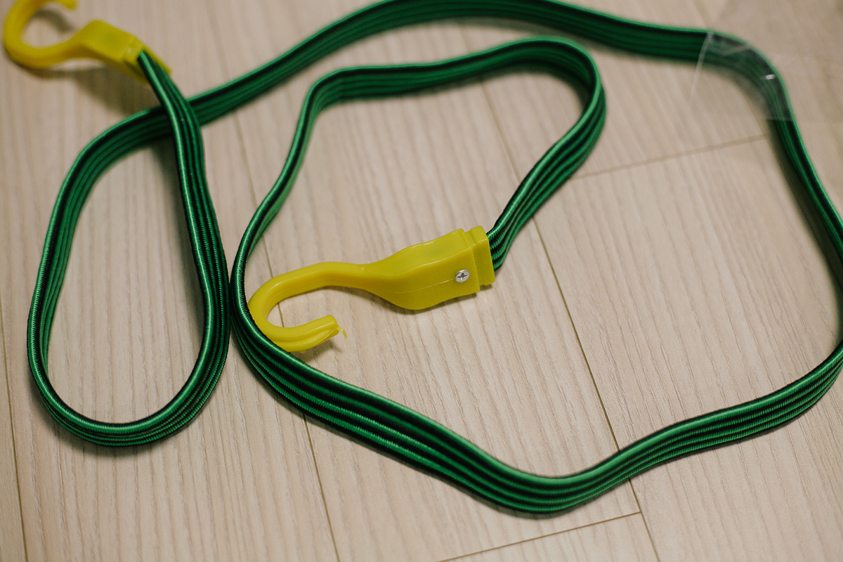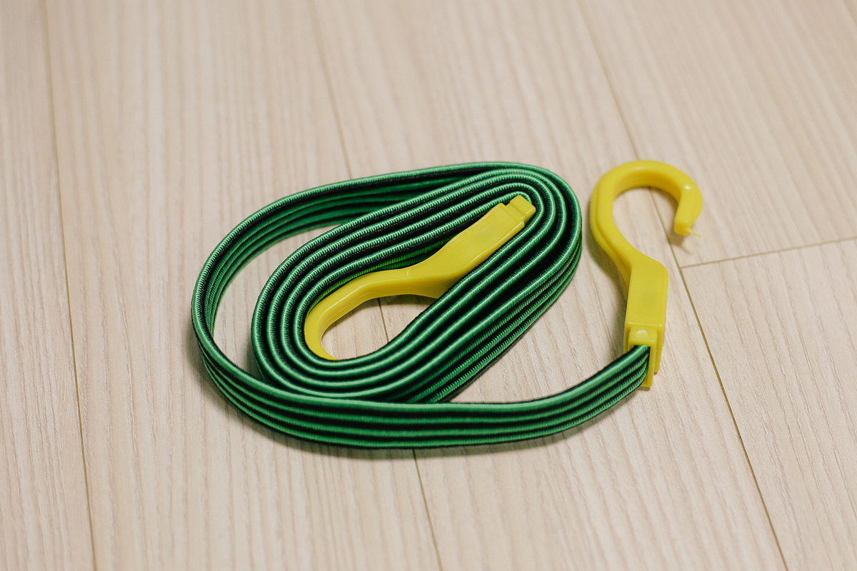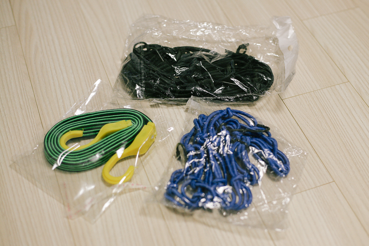 이건 1.5 납작 고리줄이다. 일반적인 고리 줄은 끈 부분이 동글하게 되어 있는데, 이 고리 줄은 수납할 때 촥 감기도록 납작한 형태로 되어 있다. 아마 박스 같은 짐을 실을 때 매우 효율적이라 생각된다.