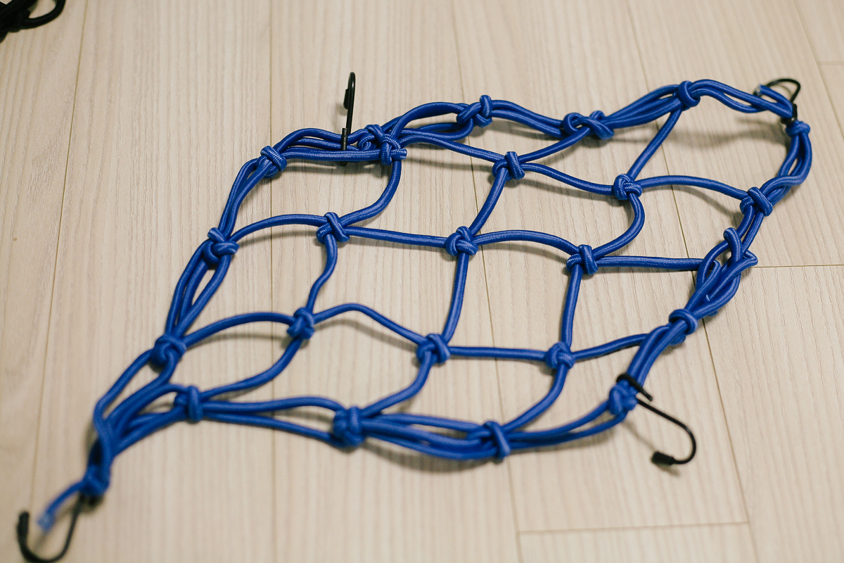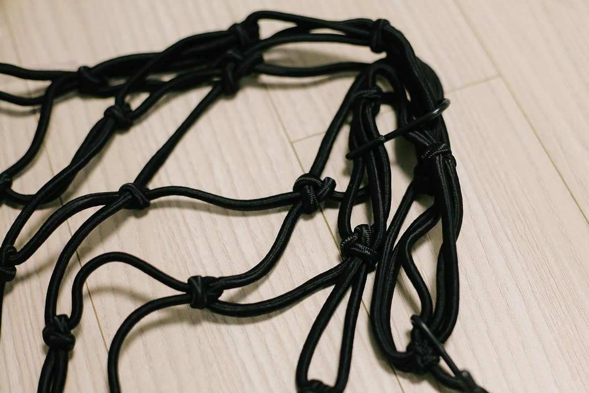 다음으로 매일 사용하고 다니는 25cm 그물망. 에코백을 접어서 넣거나, 가벼운 짐을 수납하기 용이하다. 물론 늘어나는 그물망이기 때문에 더욱 큰 짐도 타이트하게 잡아주어 고정시킬 수 있다.