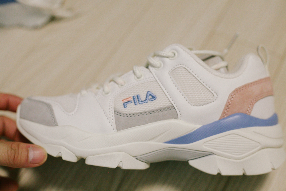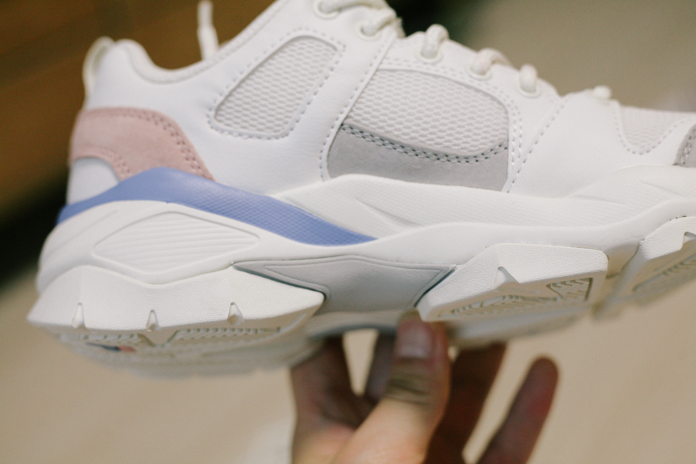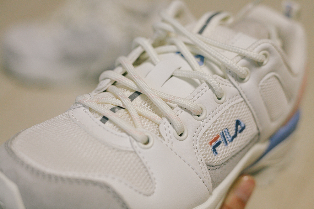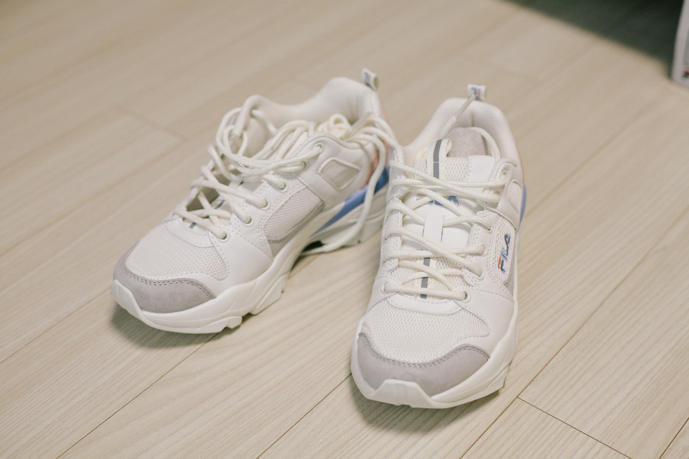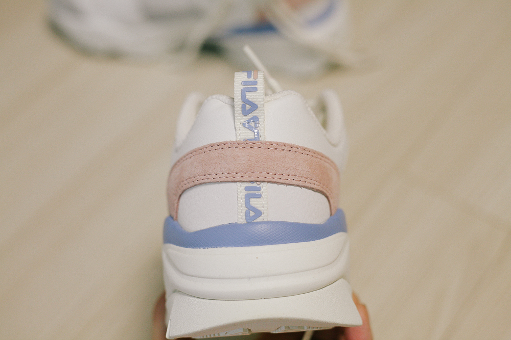 아내도 정말 마음에 들어했다. 운동화 끈에도 분홍색 점선으로 포인트가 되어 있고, 휠라 로고도 파스텔 톤 포인트 컬러를 동일하게 반영하여 러블리하고 일체감 있는 느낌을 주었다.