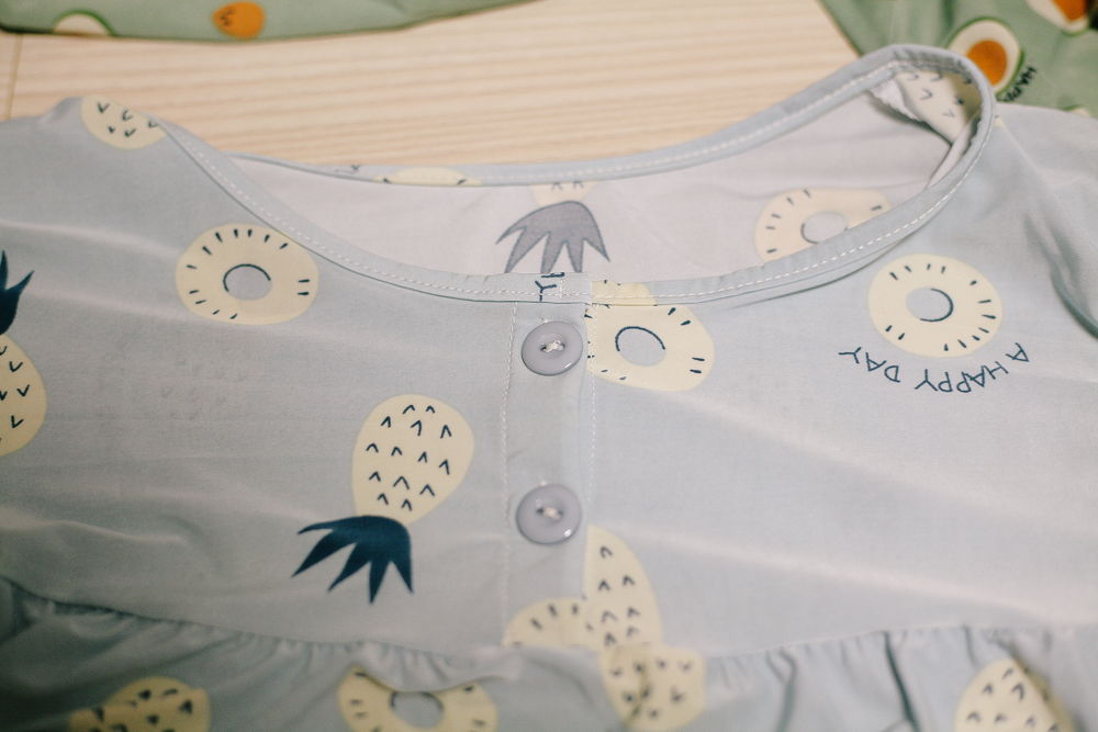 시원한 하늘색에 귀여운 파인애플 일러스트가 그려져 있는 잠옷.