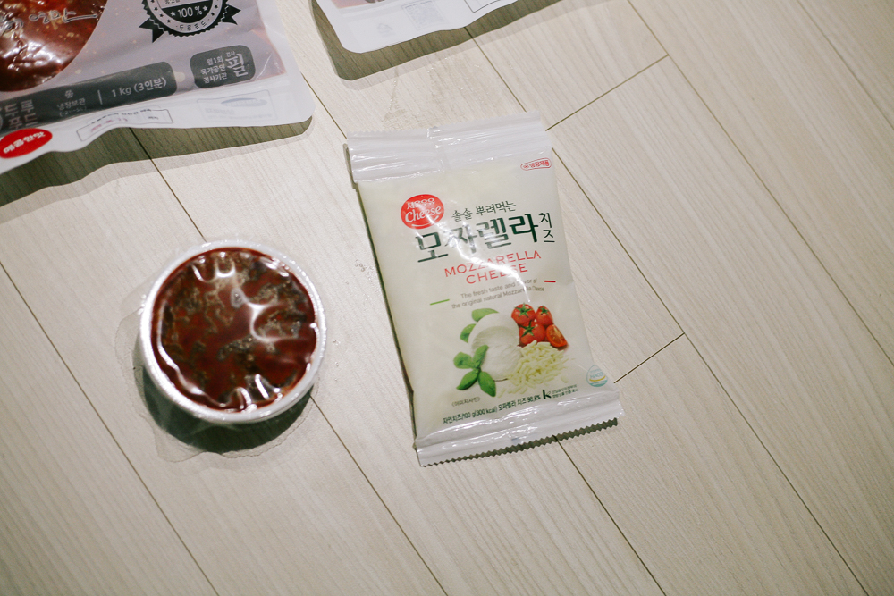 맛은 다양한 맛이 있었는데, 일단 간장맛(1kg), 매콤 맛(1kg), 전통 맛(1kg) 이렇게 각각 3개를 구매하였다. 그리고 추가 상품으로 모차렐라 치즈도 함께 주문!