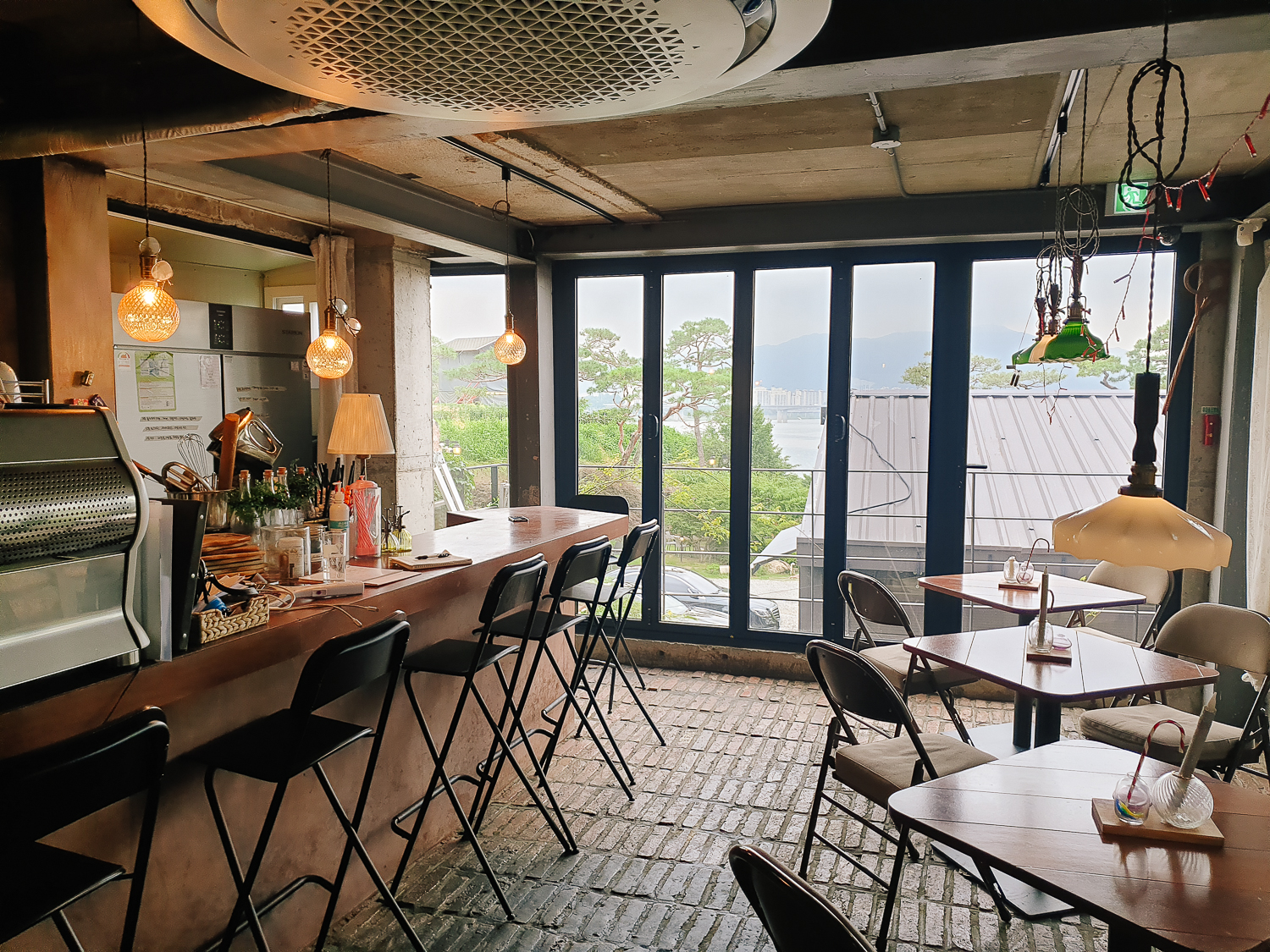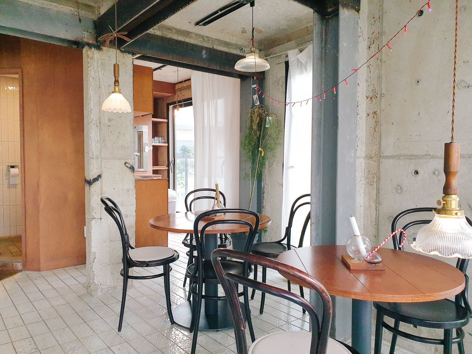 2층에 여자 화장실, 남자는 1층에 화장실이 있다. 테이블도 원형 테이블로 최소한의 공간으로 여럿이 둘러 앉을 수 있도록 한 모습이다. 역시 통창으로 되어 있어 채광이 좋았으며, 테이블, 의자, 그 외 앤티크 한 가구를 매칭 한 모습이다. 소소하게 여성분들이 좋아할 법한 아기자기한 소품들도 많이 보였다.