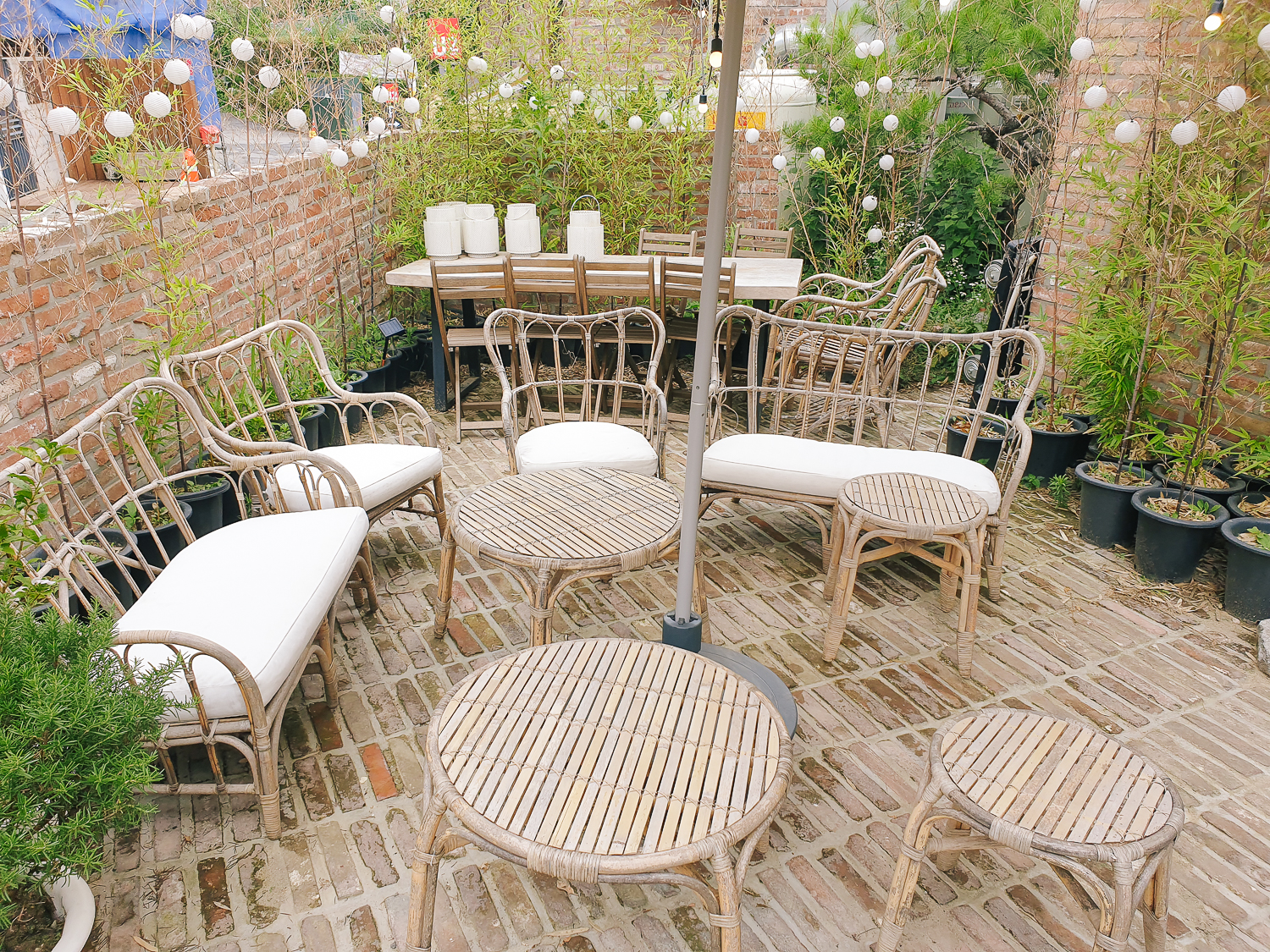 1층임에도 뒷쪽 마당은 조금 낮은 지대기 때문에 채광이 더 밝은 모습이다. 햄버거를 받고 나서 밖에 정원에 나가 앉아서 먹는 사람들도 몇몇 봤었다. 날씨가 좋은 날에는 야외에서 햄버거를 즐기는 것도 굉장히 좋아 보였다.