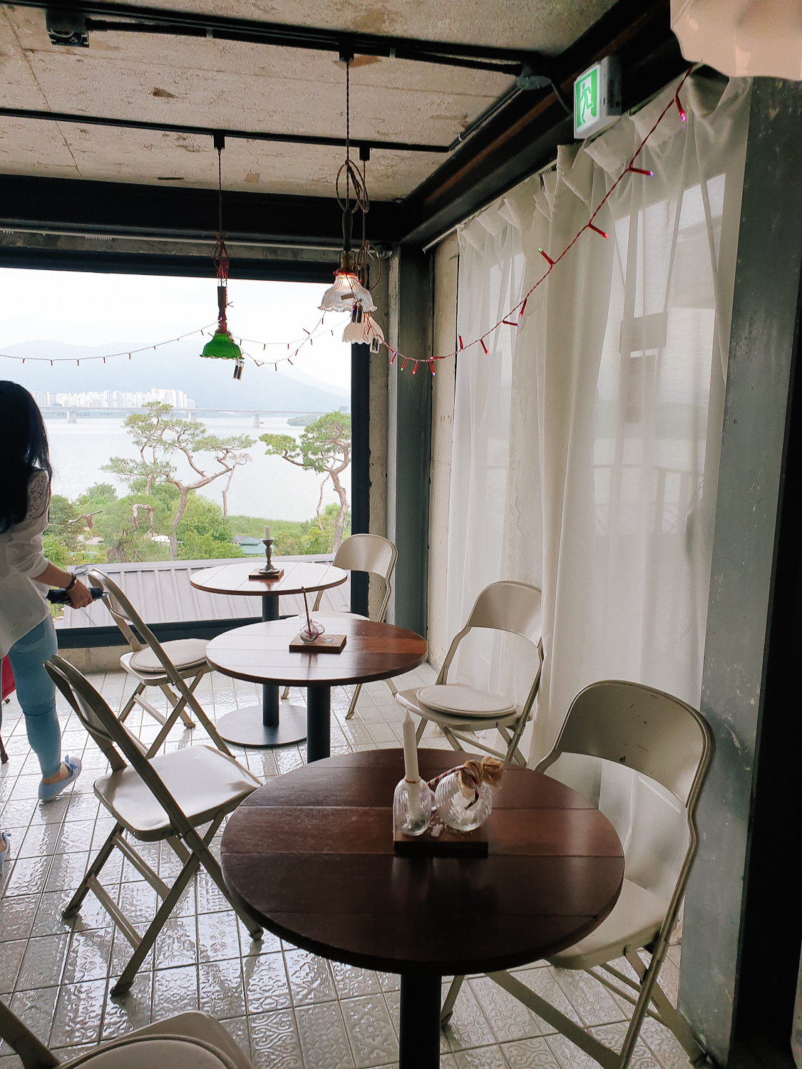 우리는 2층에 위치한 창가 쪽 테이블에 자리했다. 비가 내릴 수도 있는 흐린 날씨라 먹구름이 많이 떠있다. 그럼에도 탁 트인 한강뷰가 정말 속 시원하고 멋진 풍경이라고 할 수 있겠다.