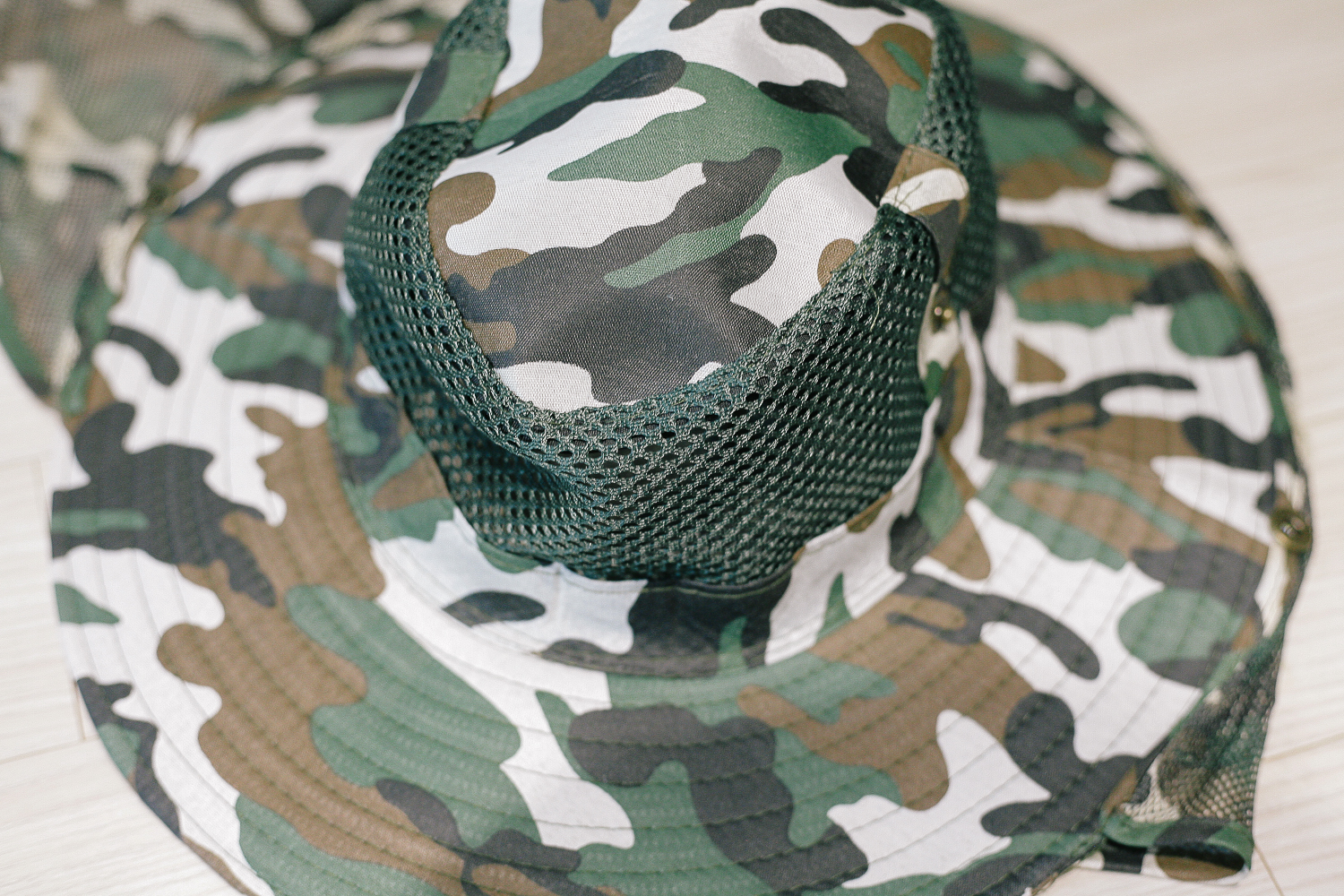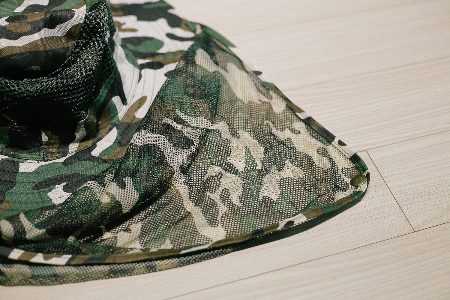 그리고 내가 사용할 넥 커버 사파리 모자. 군대 전투복이 생각나는 카모 패턴으로 올드하지 않고 나름 트렌트 한 느낌을 주고 있다. 무엇보다 이 제품도 넥커 버가 달려있다. 하지만 꽃무늬 농사 모자보다는 햇빛 차단에 덜 돼 보였다. 왜냐면 매쉬 원단으로 전체가 되어 있어 틈 사이로 햇빛이 충분히 들어올 수 있어 보였다.