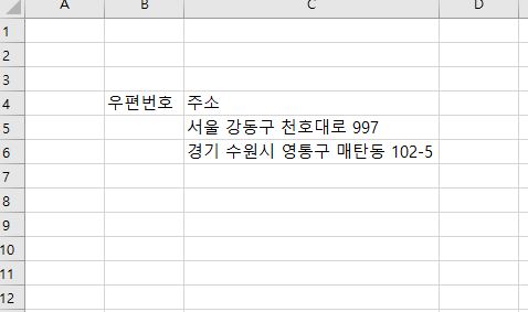 우편번호 생성할 주소지 혹은 문서를 연다. 세팅한 뒤 필요한 주소지를 드래그 및 복사 해둔다.(복사 Ctrl + C)