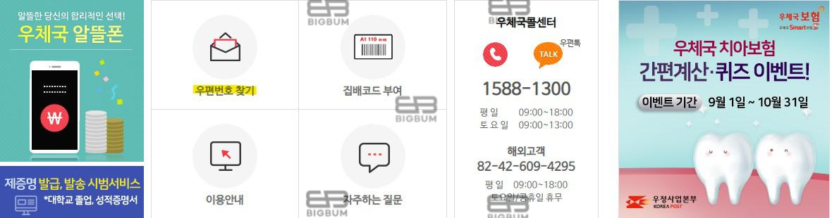 우체국콜센터 1588-1300 평 일09:00~18:00 토 요 일09:00~13:00 해외고객 82-42-609-4295 평 일09:00~18:00 토요일/공휴일 휴무