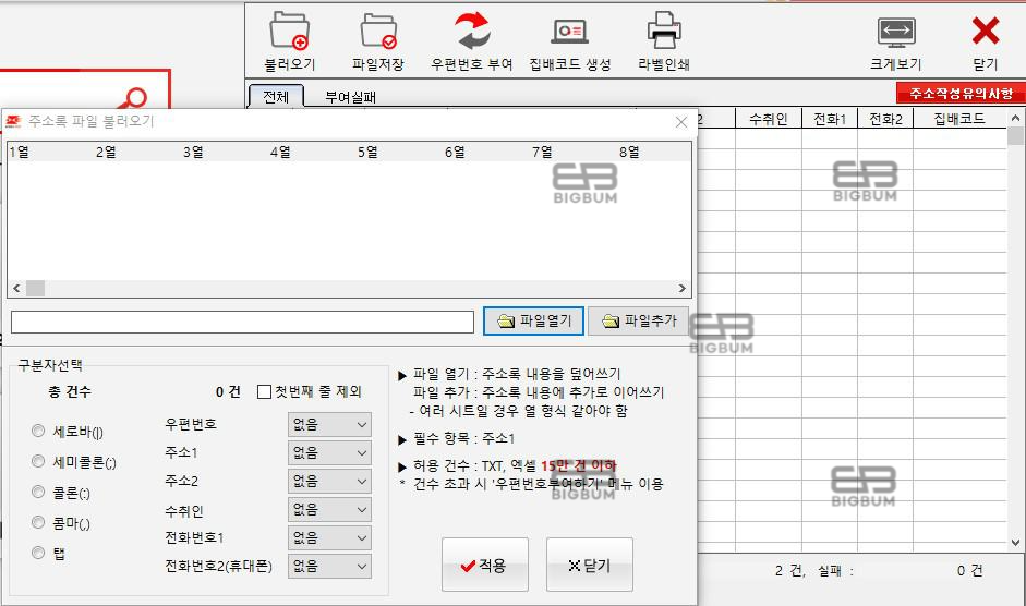 생성된 우편번호 영역을 엑셀처럼 동일하게 드래그 및 복사를 한 다음에, 원본이 입력된 문서 혹은 리스트에 우편번호를 붙여 넣기 하여 정리하면 된다. 또한 메뉴에 파일 저장버튼을 눌러 별도의 정리 없이 프로그램에 세팅된 정보를 엑셀화 시켜 다운로드할 수 있다.