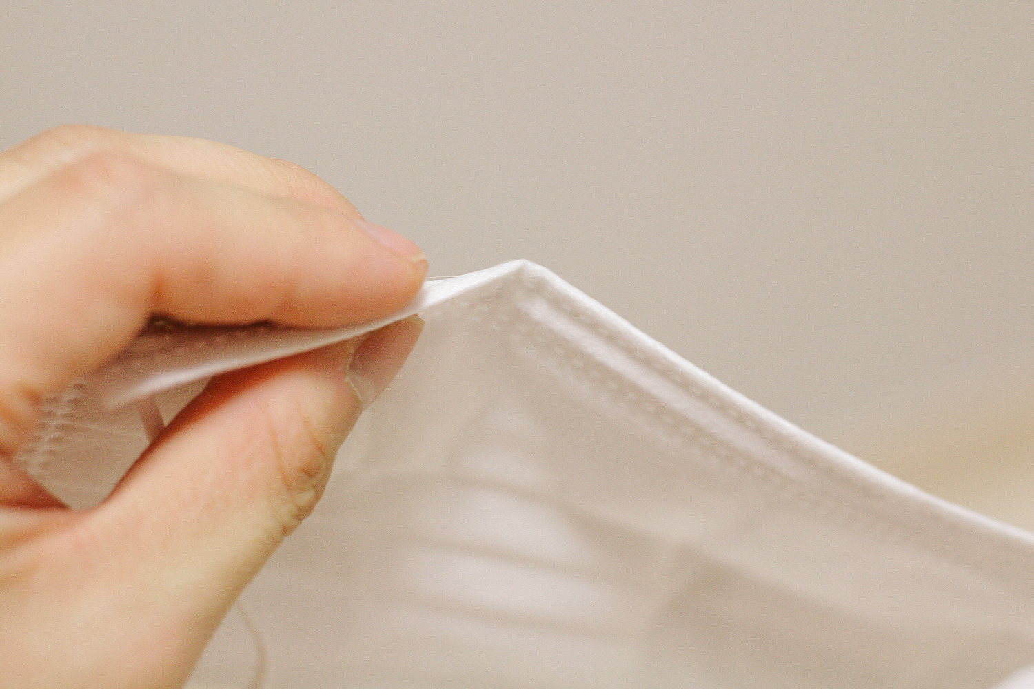 마스크 와이어는 힘이 없고 구색상 넣은 것이 아니라, 확실히 힘이 있고 고정이 되는 튼튼한 와이어였다. 살짝 집어 접었음에도 그 모양이 유지되는 것을 볼 수 있다. 마스크 착용 시 콧등에 향하도록 착용한 뒤 코와 볼 사이를 꼭꼭 눌러주어 얼굴에 최대한 밀착할 수 있도록 한다.