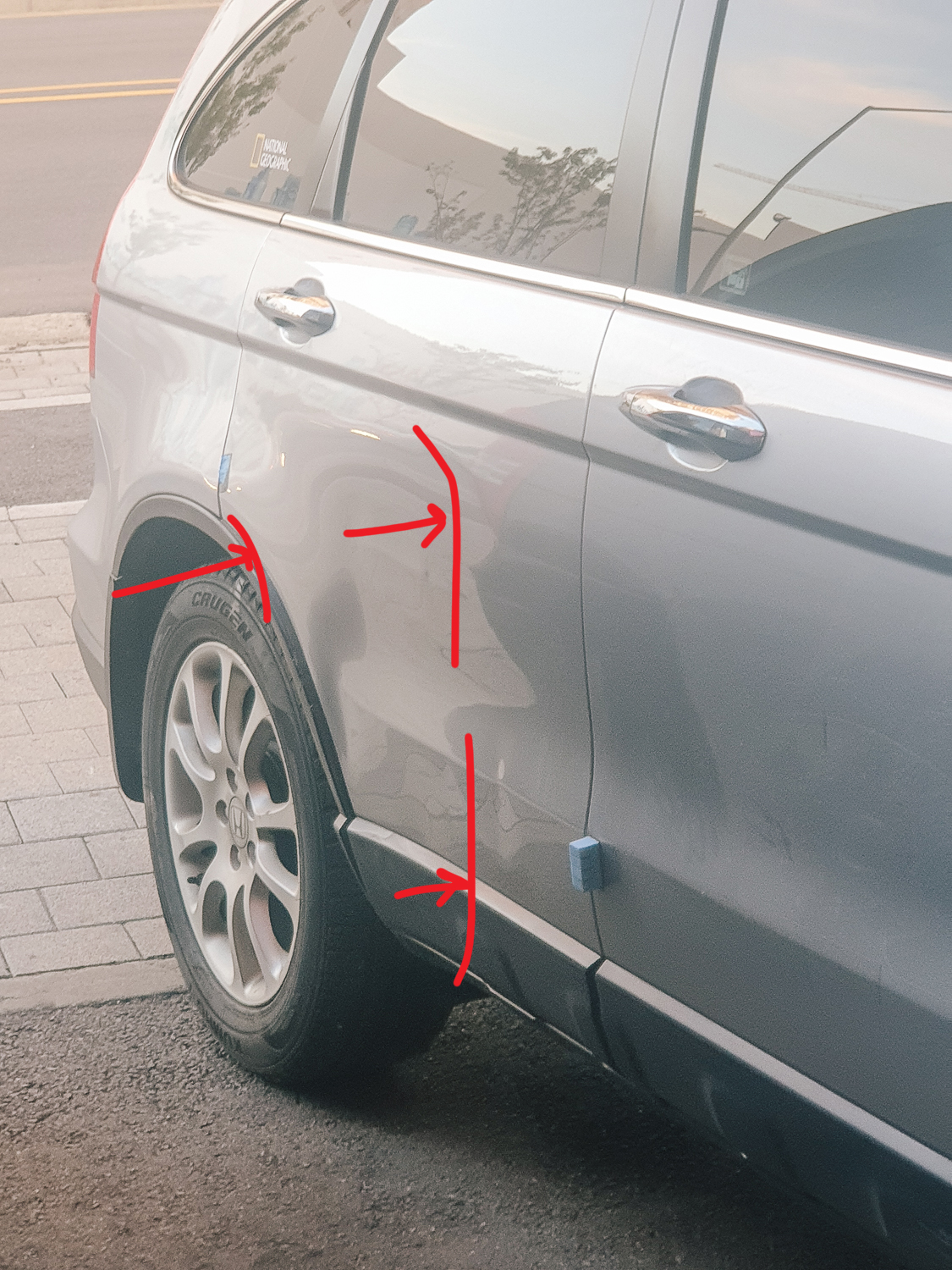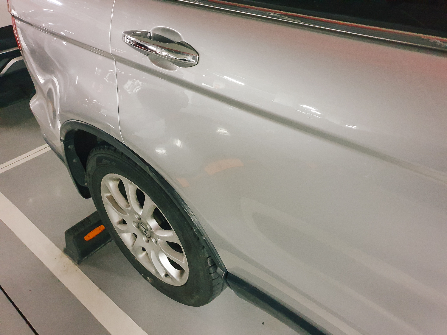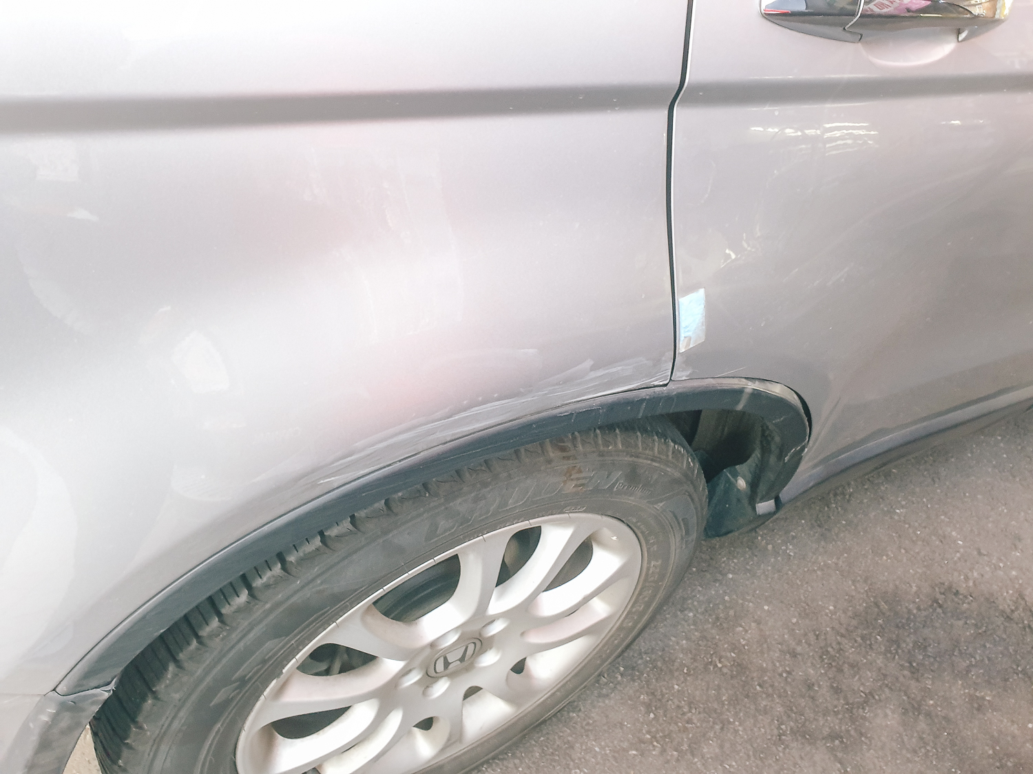 위 사진에 표시한 곳은 작업하지 않는 면으로 사장님께서 최대한 스크래치 자국이 지워지도록 광택기로 여러번 닦아주셨다. 저것이 최선,, 그리고 바퀴를 감싸고 있는 휠 아치 몰딩 부분은 혼다 서비스 센터에 주문한 상태로 부품이 오면 직접 교체할 생각이다. 의외로 볼트로 체결하는 방식이라 난이도가 어려워 보이지 않았다. 부품이 오기까지는 1주일. 택배가 안되므로 센터에 직접 방문 수령해야 한다.
