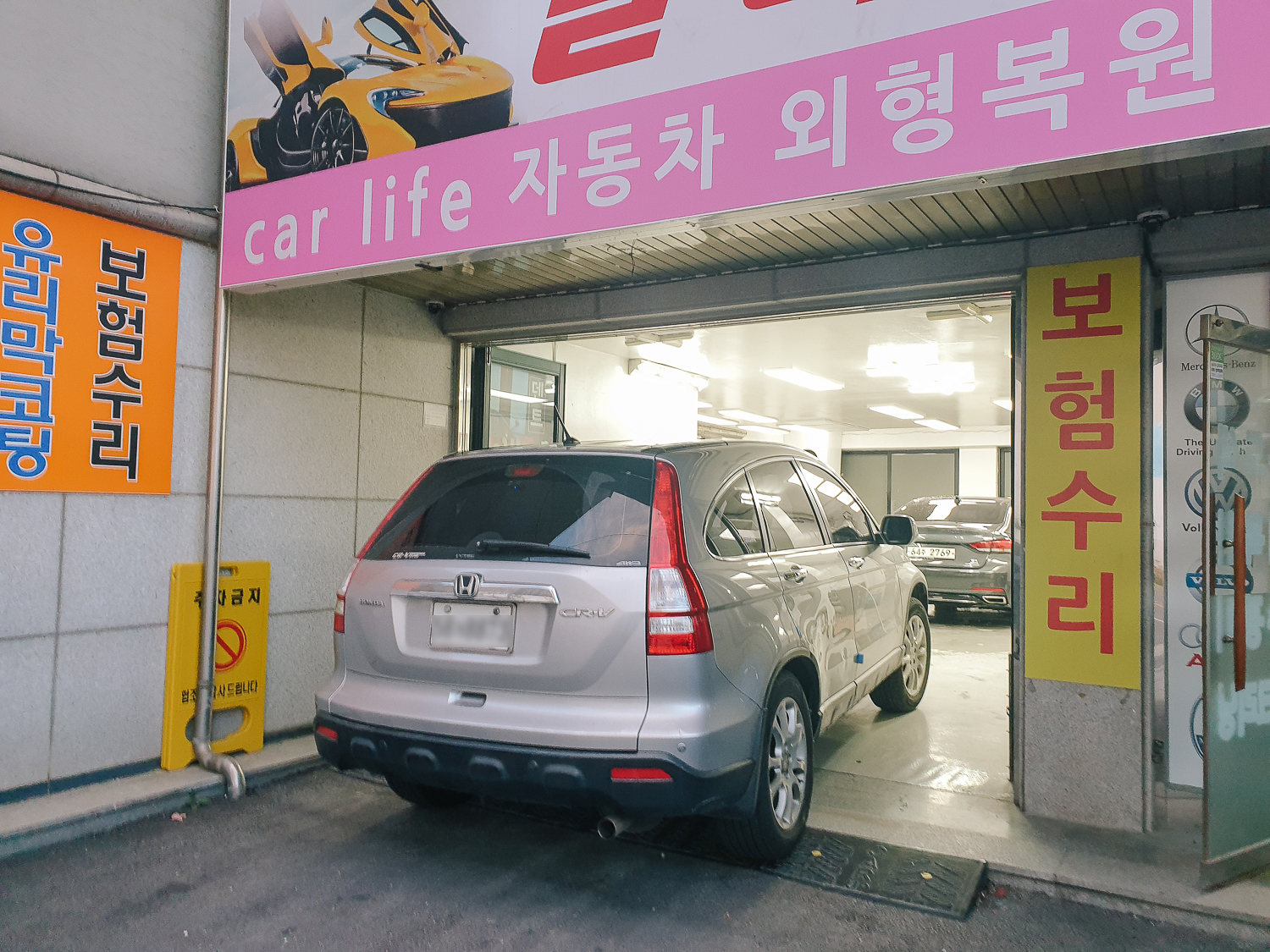 엊그제 귀신이 씌었는지 주차장에서 차를 빼다가 기둥을 긁어서 보조석 쪽 뒷좌석 도어가 많이 상했다..ㅠㅠ 불행 중 다행이라면 신축이라 주차장 기둥 모서리에는 고무 가드 처리가 되어 있어서 도장 페인트는 벗겨지지 않았다는 것! 때문에 외형만 복원하는 덴트 작업만 하면 되는 것이었다! 일단 하루 맡길 것을 생각하여 동네 근처 덴트 집을 검색하여 다산동에 위치한 칼라매치 복원점에 방문하게 됐다.