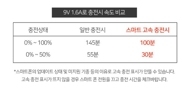 휴대폰 충전기에는 일반 충전기가 있고, 급속 충전기가 있다. 급속 충전기에는 번개 아이콘으로 식별 가능하게 디자인이 되어 있는게 대부분이다. 급속 충전기는 확실히 급한 용무가 있을 때 잠깐 꽂아놔도 충전이 팍팍되기 때문에 매우 편리하다. 그래서 회사처럼 장기간 컴퓨터에 앉아 일할 때만 일반 충전기를 사용하고, 집에서 잠깐잠깐씩 있을 때 급속 충전기를 이용하는 편이다.