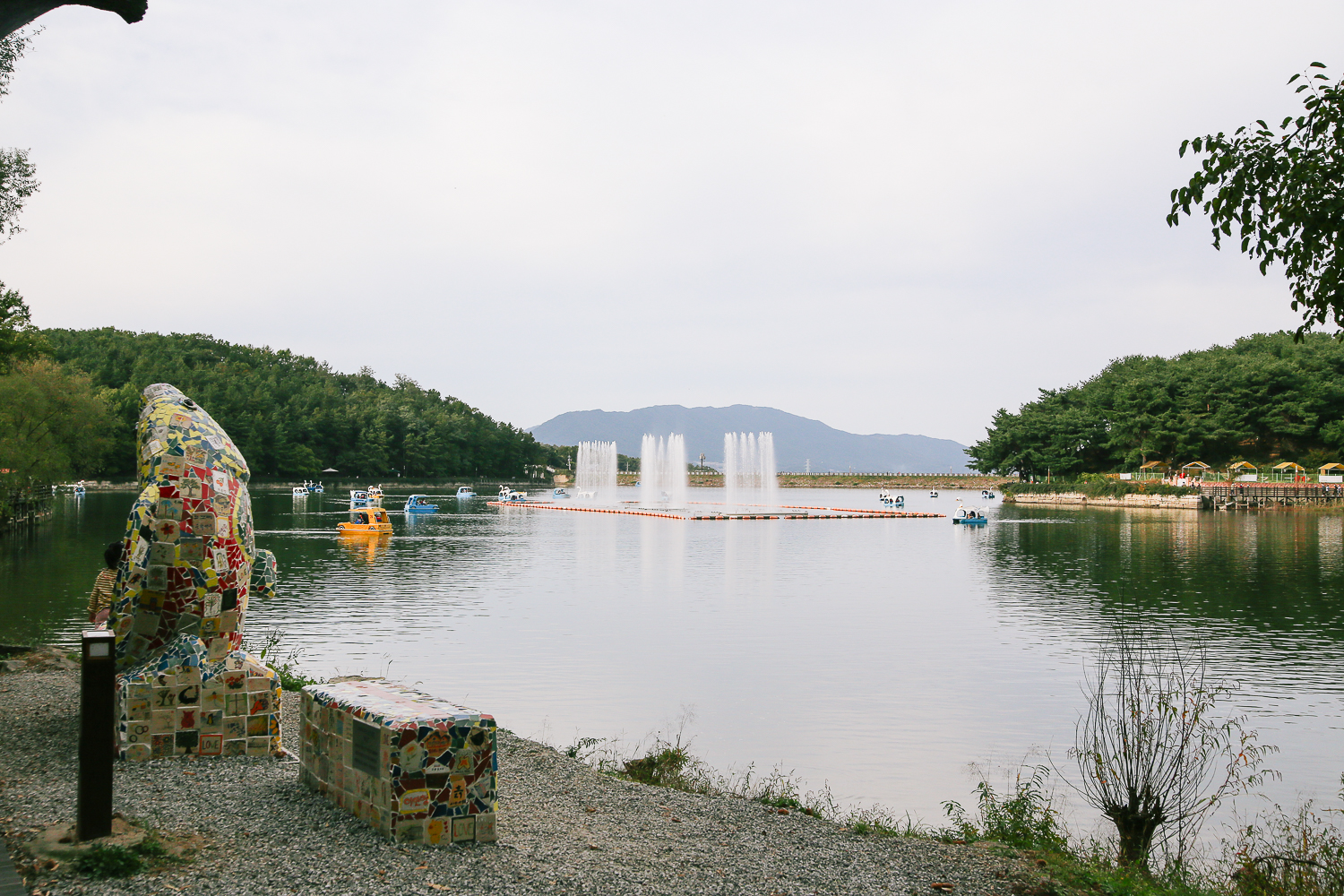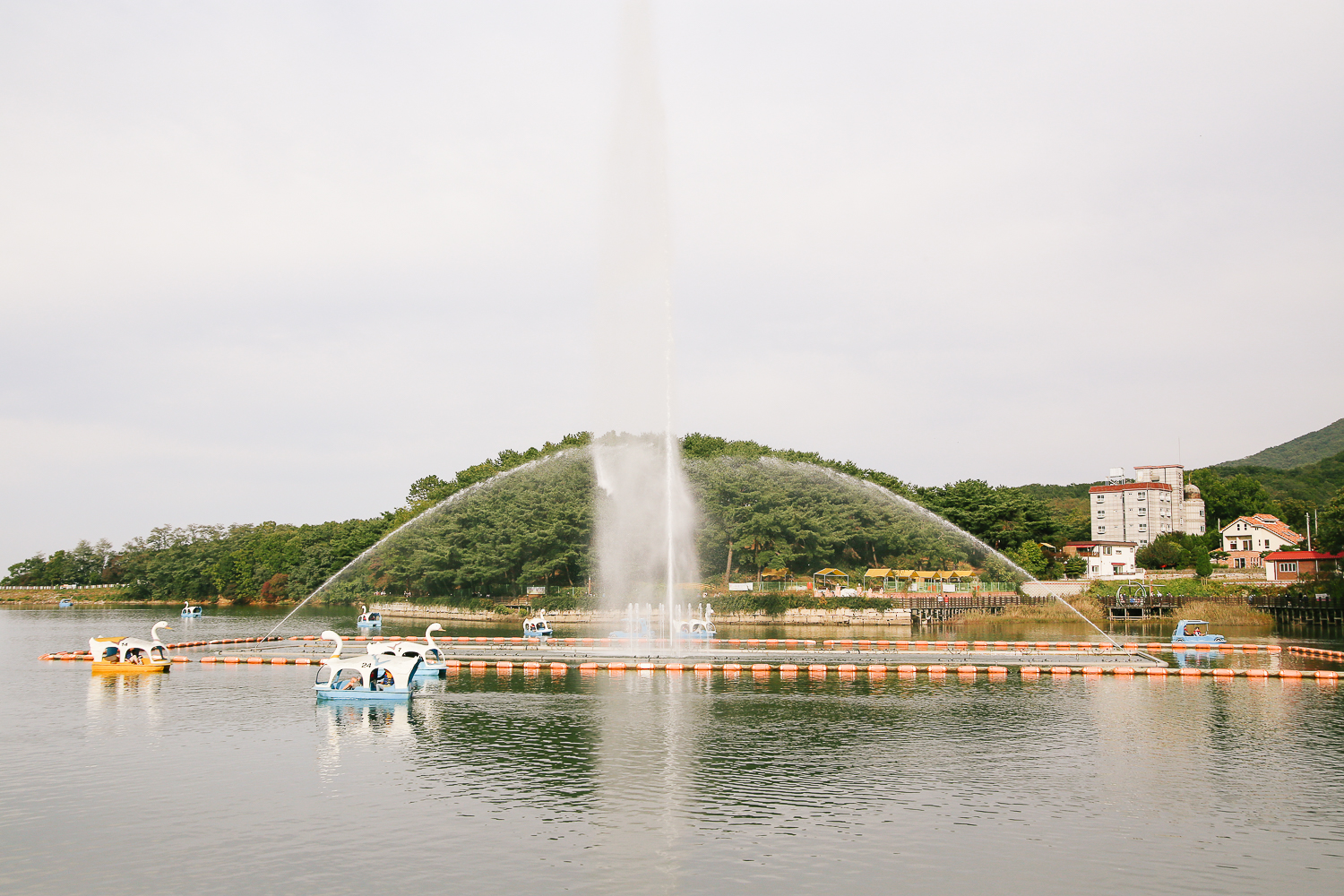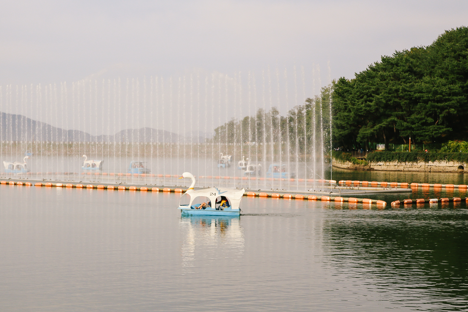 저수지 중앙 쪽에 분수가 나오는데 계속 물줄기 높이를 변화를 주면서 화려하게 춤추듯 물을 뿜어냈다. 최고로 분수를 뿜었을 때 하늘 사이로 은은하게 번지는 무지개는 정말 아름다웠다 :)