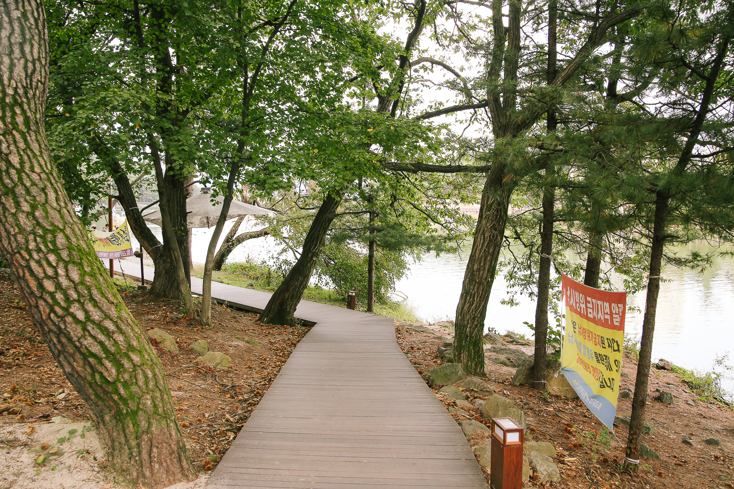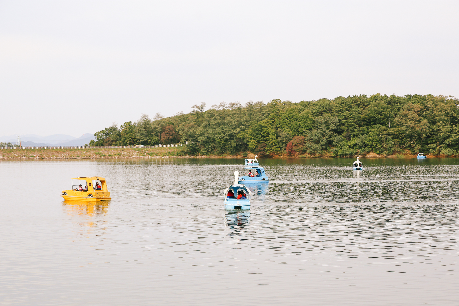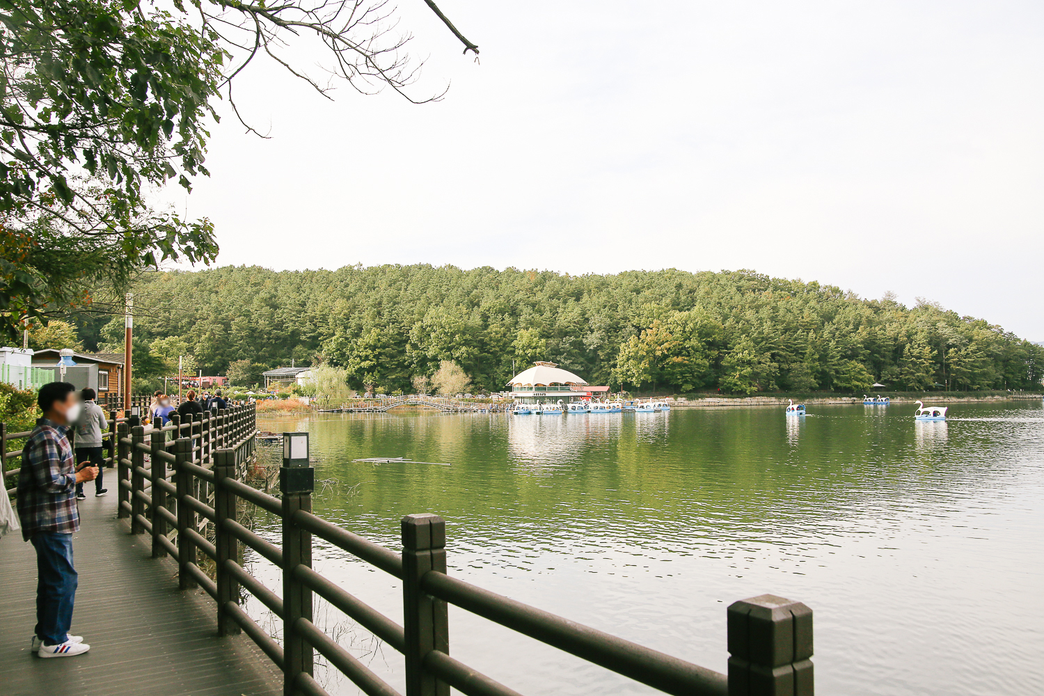 반대편 둘레길. 사람이 손톱보다도 작게 보일만큼 꽤 큰 저수지였다. 물론 우리는 체력이 저질이라 전체 한 바퀴를 크게 돌지 못했고, 오리배를 대여해주는 근처까지 갔다가 다시 돌아왔다.