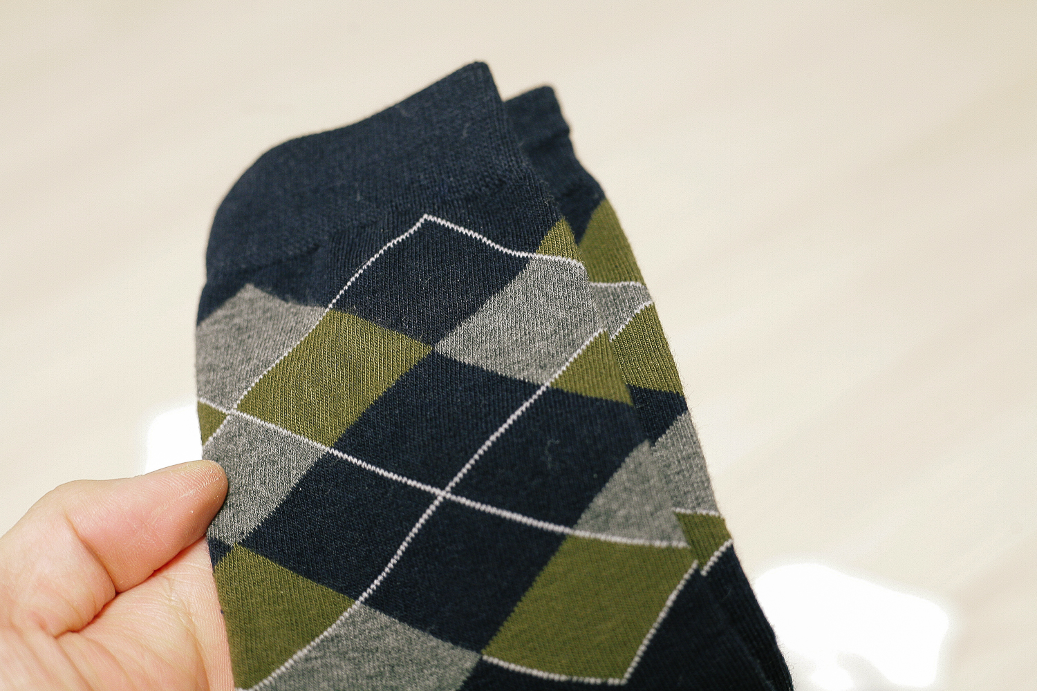 내가 구매한 것은 왼쪽에서 부터 무지 골지(화이트), 하프 아가일(화이트), 하프 아가일(네이비)이다.