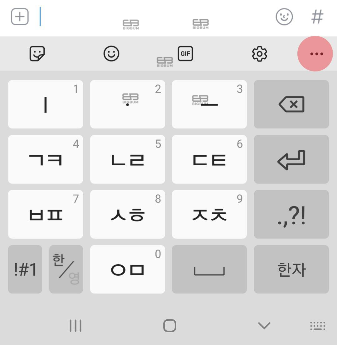 ① 먼저 카톡, SMS, 메모 등 글을 쓰기 위해 터치를 하게 되면 자동적으로 키패드 나온다. 여기서 우측 상단에 더보기 … 아이콘을 눌러준다.