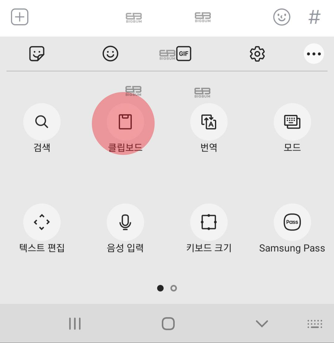 ② 더보기 메뉴를 누르면 검색, 클립보드, 번역, 모드 등 다양한 메뉴가 나오는데 여기서 클립보드를 클릭한다.