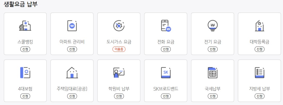 번거롭게 생활요금납부를 카드로 미리 신청하여 자동결제가 될 수 있도록 하면 신경을 덜 쓸 수 있고 편리해진다. 그에 따른 혜택도 있을 수 있으니 각 카드사별로 확인하여 생활요금납부를 자동결제 신청을 하면 좋을 것 같다.
