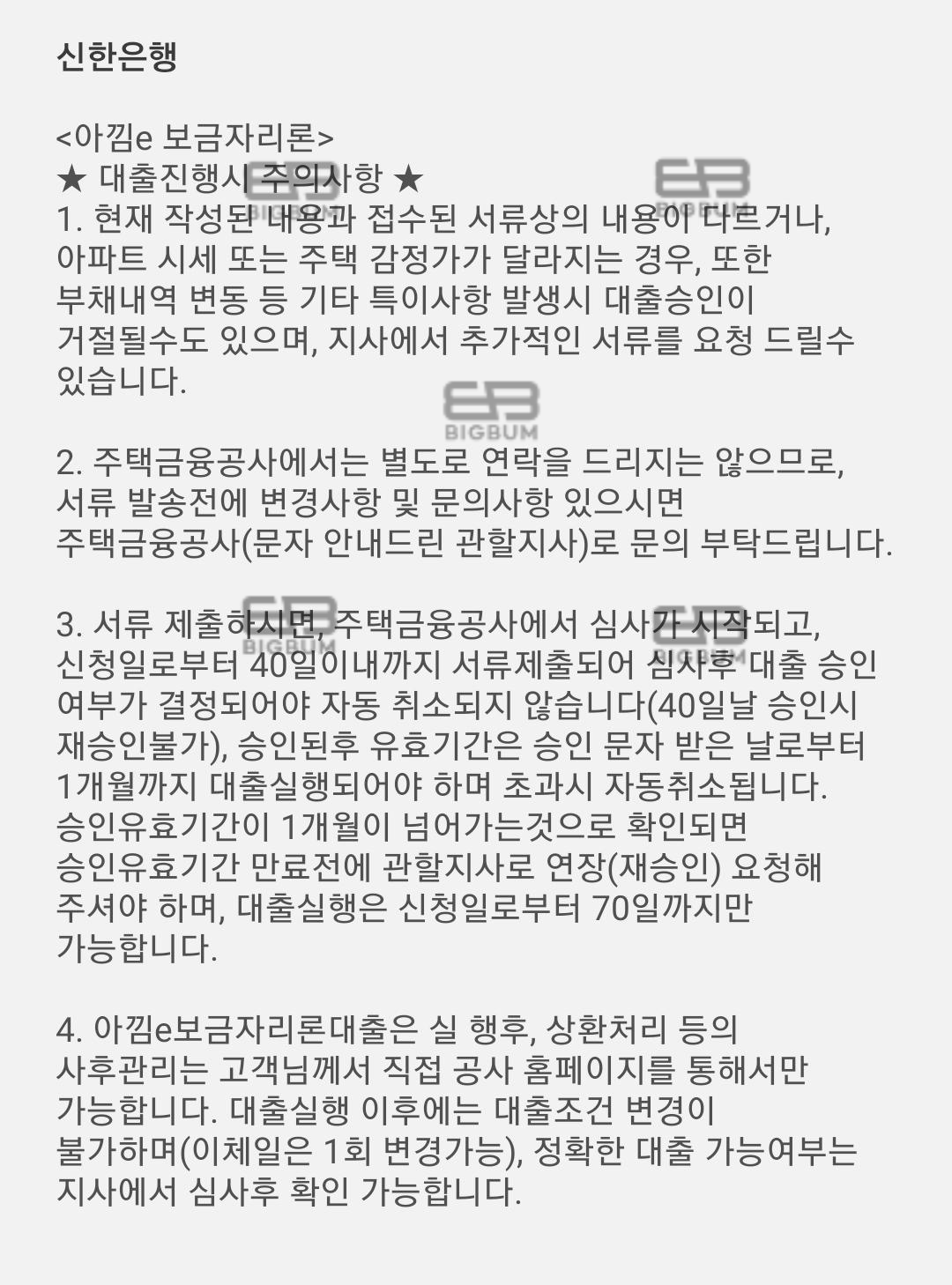 내 집 마련 때문에 모든 것이 생소한 금융 업무 및 부동산 정보들, 신청일(잔금일) 기준으로 부터 70일 전부터 신청 가능했던 아낌 e 보금자리론 대출을 신청하였고 2달 이상 남았던 기간 덕에 신청 한 달여 만에 대출심사 완료가 되었다. 승인 완료 후 신청일(잔금일)로 부터 1개월(30일) 이내 대출 진행을 해야하기 때문에 보통 서류접수 안내 메시지는 신청일이 되기 30일 전 위와 같이 안내 메시지가 온다.