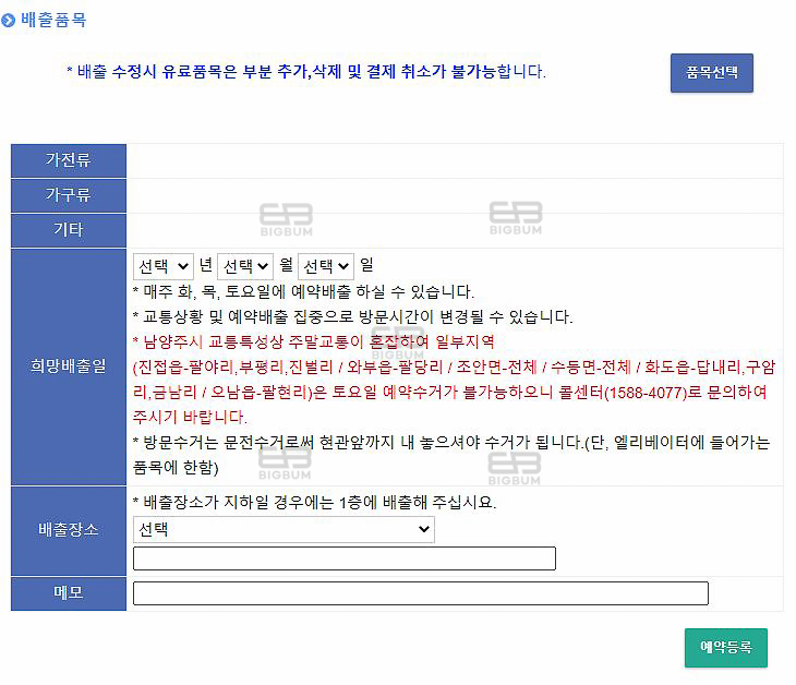 남양주시청 예약배출 신청 대형폐기물 통합관리센터 바로가기
