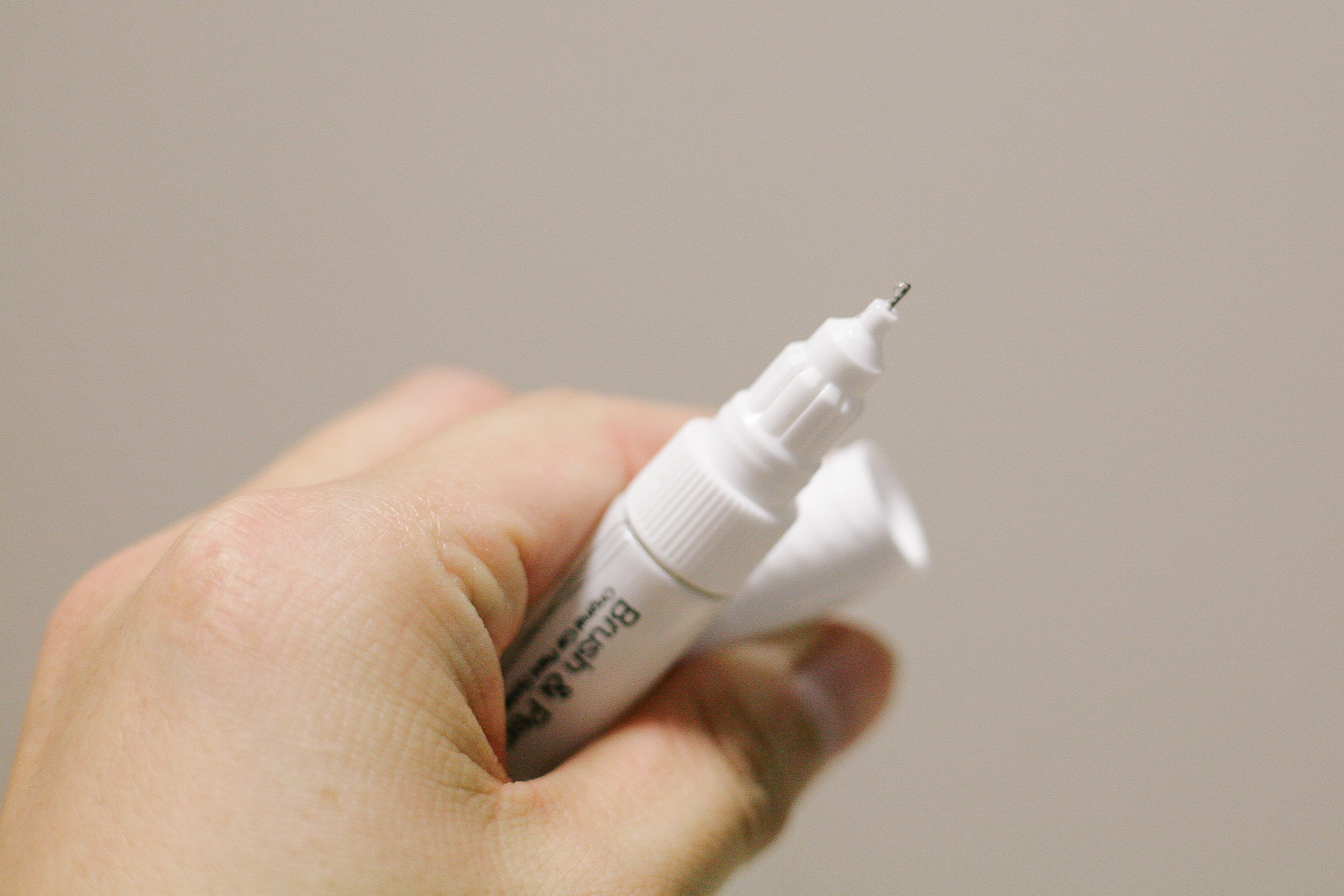 그리고 뚜껑 전체를 돌리지 않고 맨 위 꼭지만 위로 당겨 빼면 돌빵 맞은 홈 페인 부분 작업하기에 적합한 뾰족한 타입이다. 콕콕콕 찍듯이 두드려주면 파인 홈에 살짝 채워지는 느낌이라고 할 수 있다.