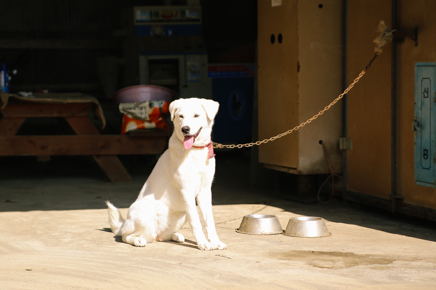 은행마을 초입을 지키는 귀여운 댕댕이. 기념으로 한 컷! 덩치는 꽤 컷지만 얼굴을 보니 아직 애기인 것 같았다..ㅎㅎ