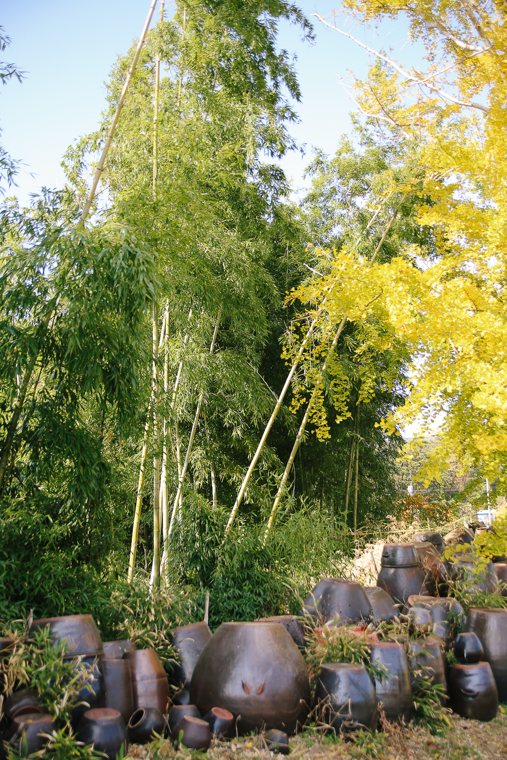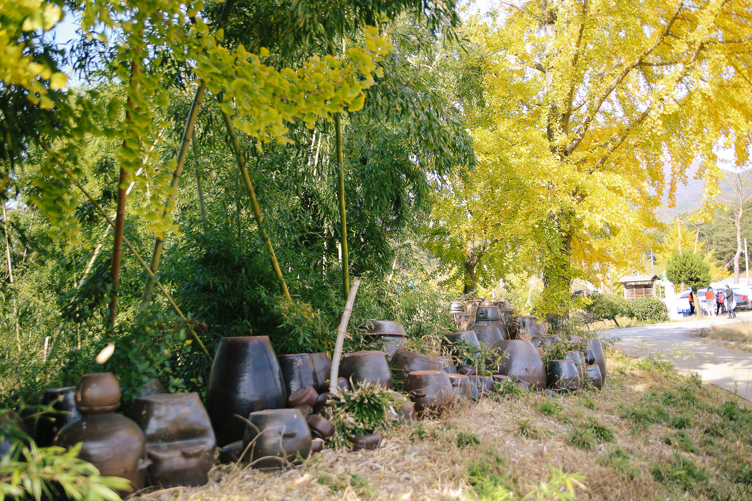 은행마을 초입에서 열 체크 및 출입부 작성을 마치고 산책로를 따라 걸어갔다. 초입에 있던 장독대와 대나무 숲, 그리고 은행나무의 묘한 조화는 나도 모르게 자꾸 눈이 갔다.