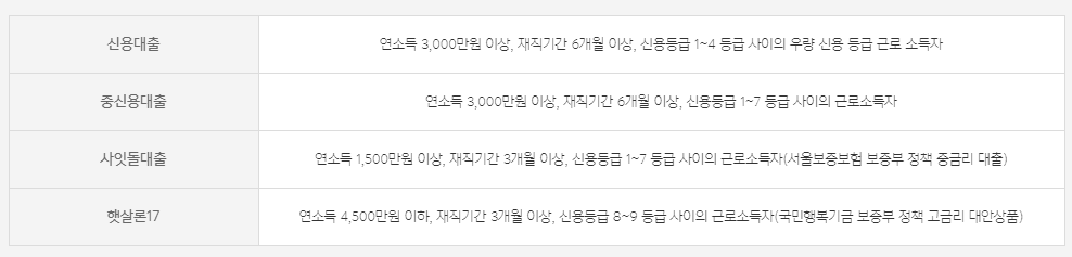 은행에 방문 없이 간편하게 카카오 뱅크를 이용하여 신용대출을 받을 수 있다. 소득, 재직기간 및 신용도에 따른 조회를 통하여 대출이 가능한데 대출상품의 목록은 다음과 같다.