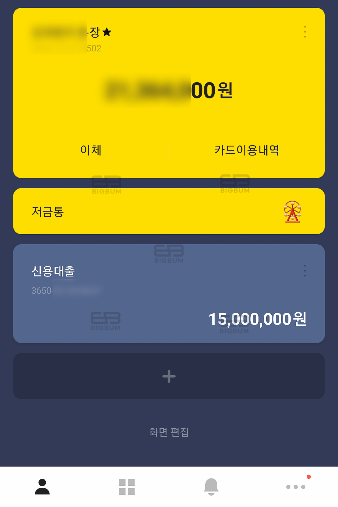 나는 1천 3백만원이 필요했지만, 혹시나 몰라서 여유돈 2백만 원을 더해 총 1천5백만 원을 대출하였다. 대출기간은 최대 5년까지이며, 금리 변동주기는 6개월, 1년으로 선택이 가능하다. 인테리어 비용에 모자란 금액을 대출하는 것이기 때문에 잔금이 남으면 바로 중도상환을 일부 할 계획이다. 또한 대출 실행 후 14일 이내 전액 상환/해지 시 대출계약 철회 신청이 가능하기 때문에 조금 더 생각할 여유를 가질 수 있다. 다만 수수료 일부가 발생할 수 있다.(신청 당일 기준 대략 1천 원 정도였다.) 그리고 카카오 뱅크 접속 시 하단에 신용대출 금액이 추가된 것을 확인할 수 있다. 본인 통장의 예금과 대출금액을 한눈에 직관적으로 모니터링이 가능하다.