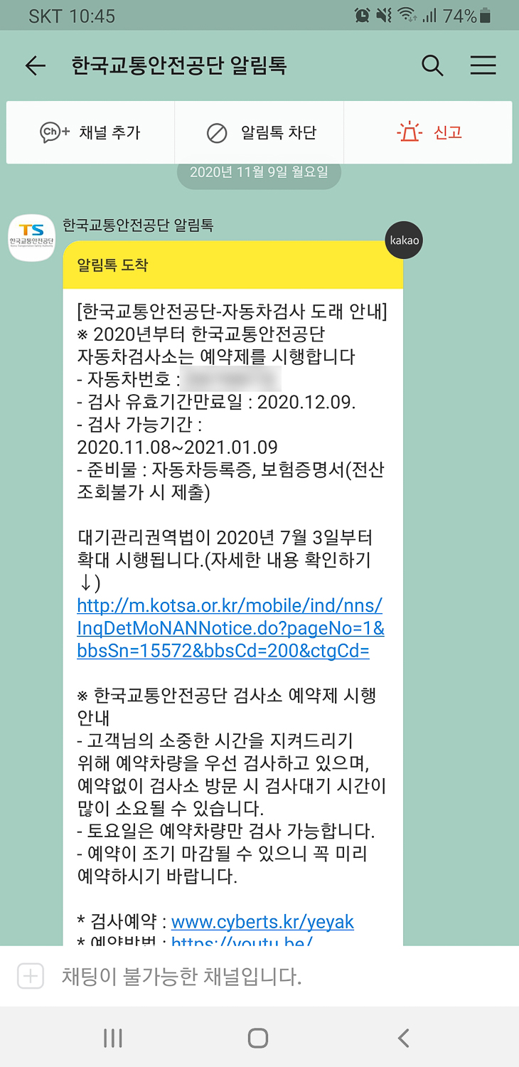 며칠 전에 한국교통안전공단에서 카톡 알림이 왔다. 내용인즉슨 자동차 정기검사 시간이 도래했다는 안내였다. 그래서 동네 근처에서 가장 가까운 곳을 찾다가 바로 이곳 퇴계원 블루핸즈 이화 자동차 정비센터에 방문하게 되었다.