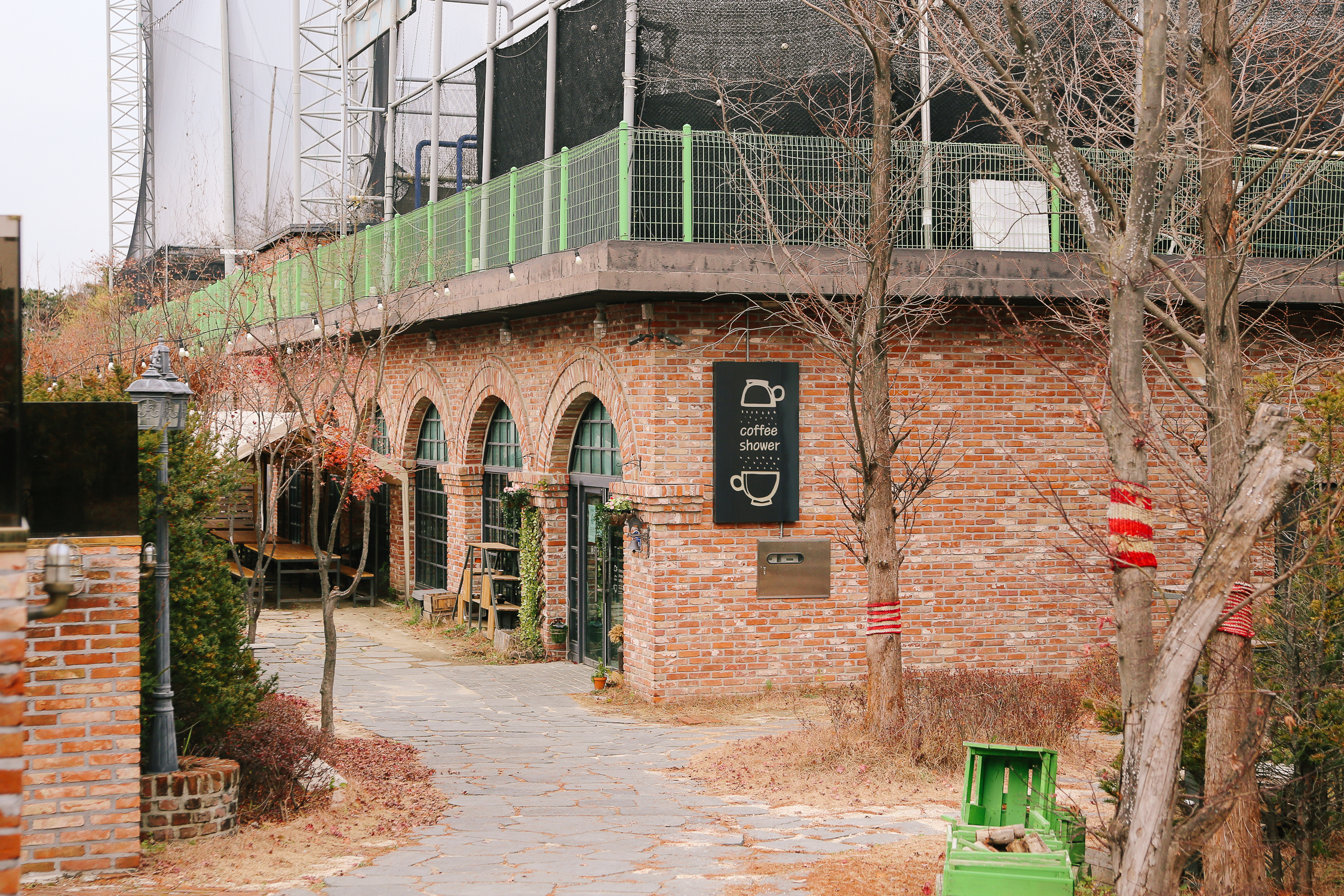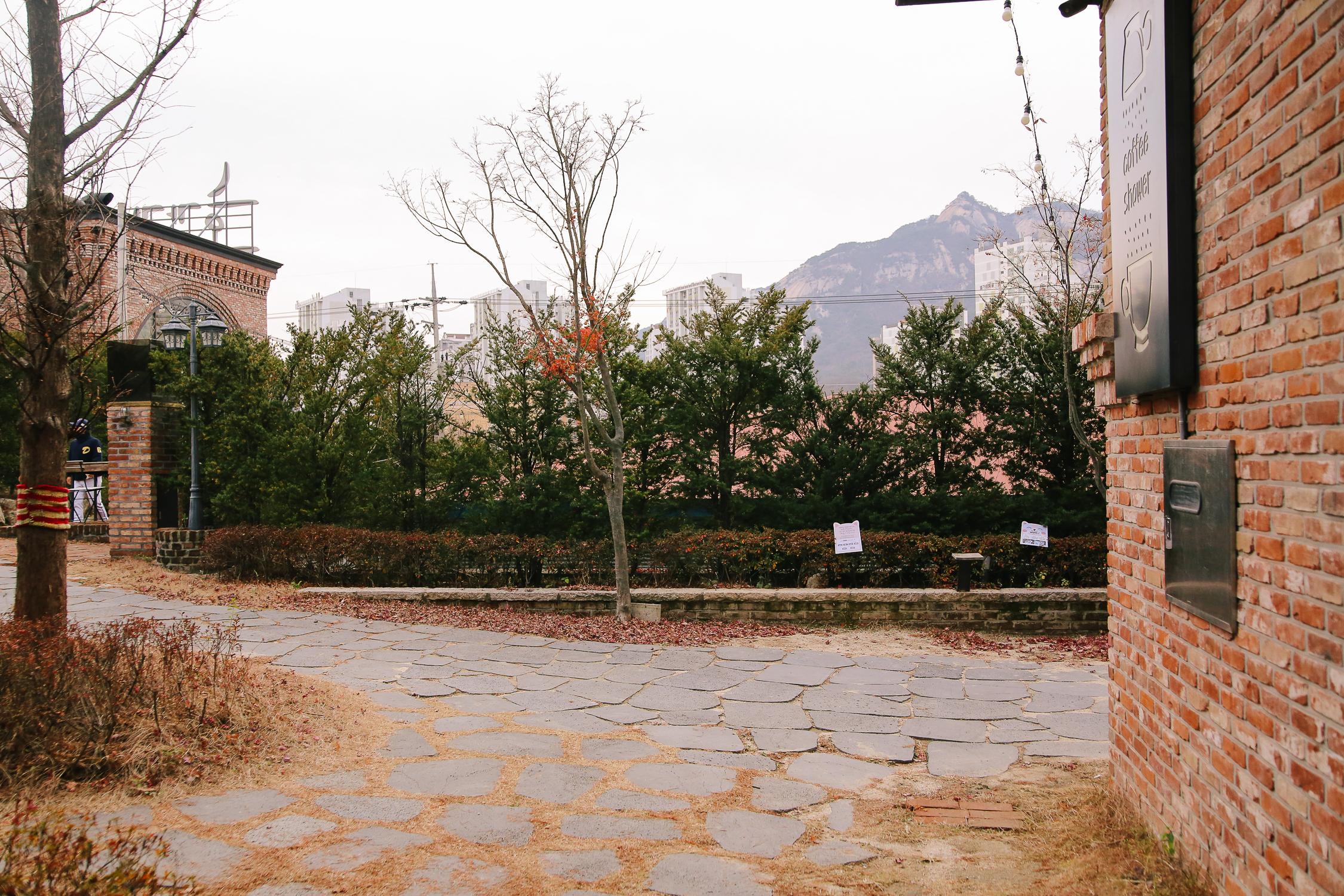 조금씩 조금씩 바뀐 커피샤워 정원 모습. 원래 이곳에는 기다란 테이블이 몇 개 있었는데 온데간데 사라져 버린 모습이다. 아마 좌측에 공사하는 건물 때문에 정원 통로를 정리해야 했는지 좁아진 모습이다.