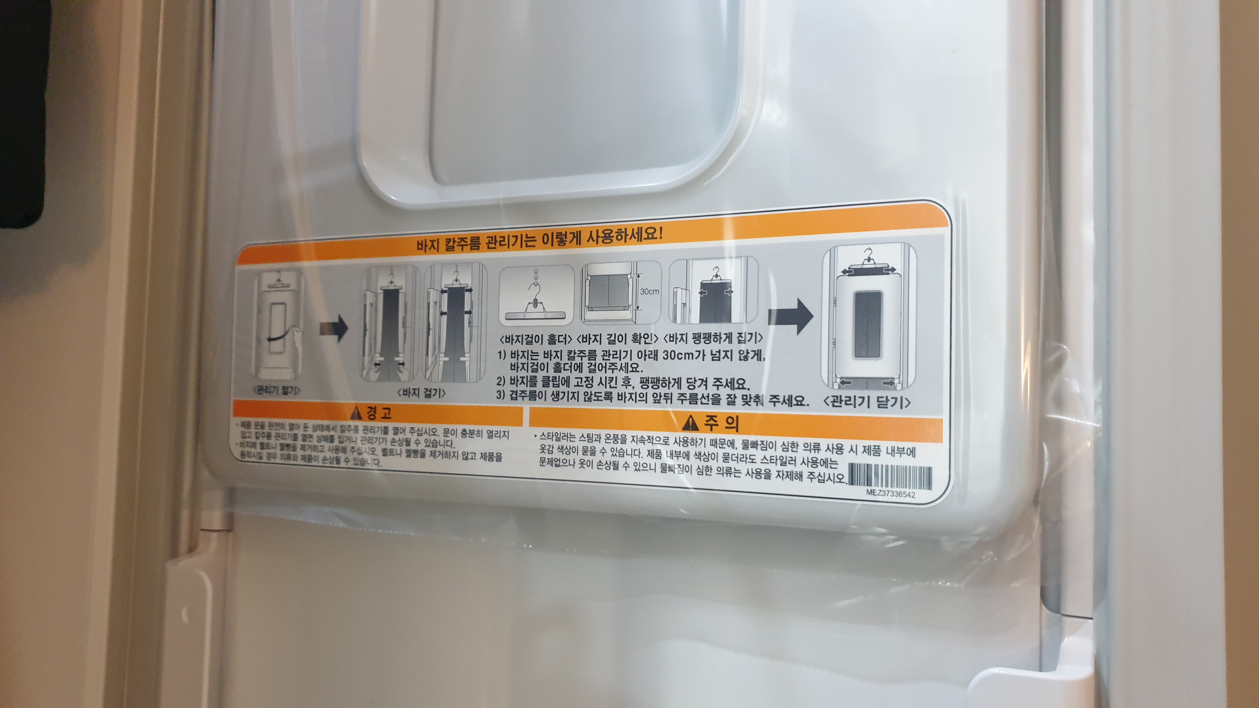 이곳은 바지 칼주름 관리기이다. 집게처럼 생긴 옷걸이로 집어서 걸어둔 뒤 사용하는 것이다. 나는 정장 바지가 없으므로 패스 ㅠㅠ 굉장히 심플하게 생겼는데 다양한 기능이 있는 LG TROMM(트롬) 스타일러 S3 WFS.